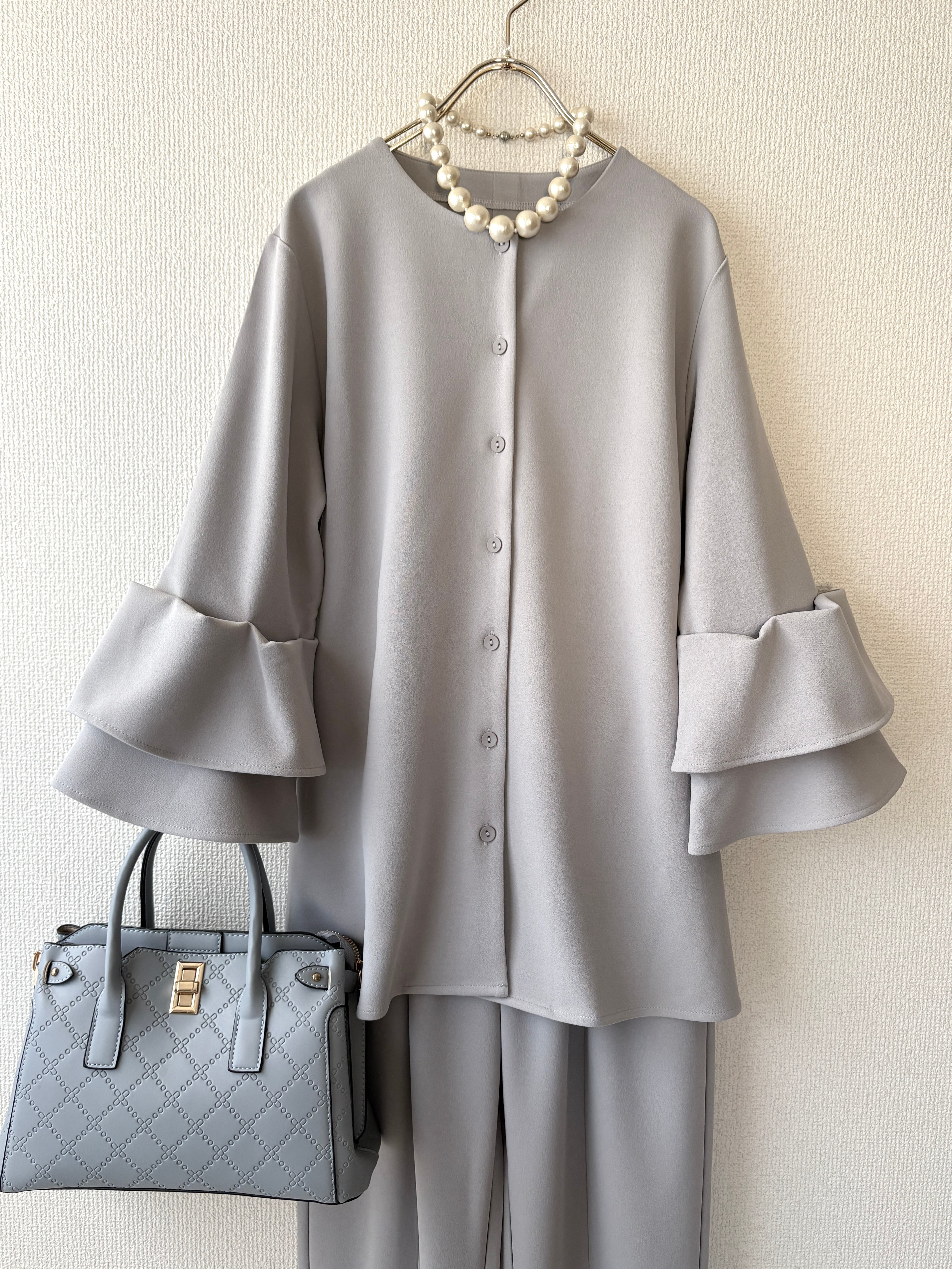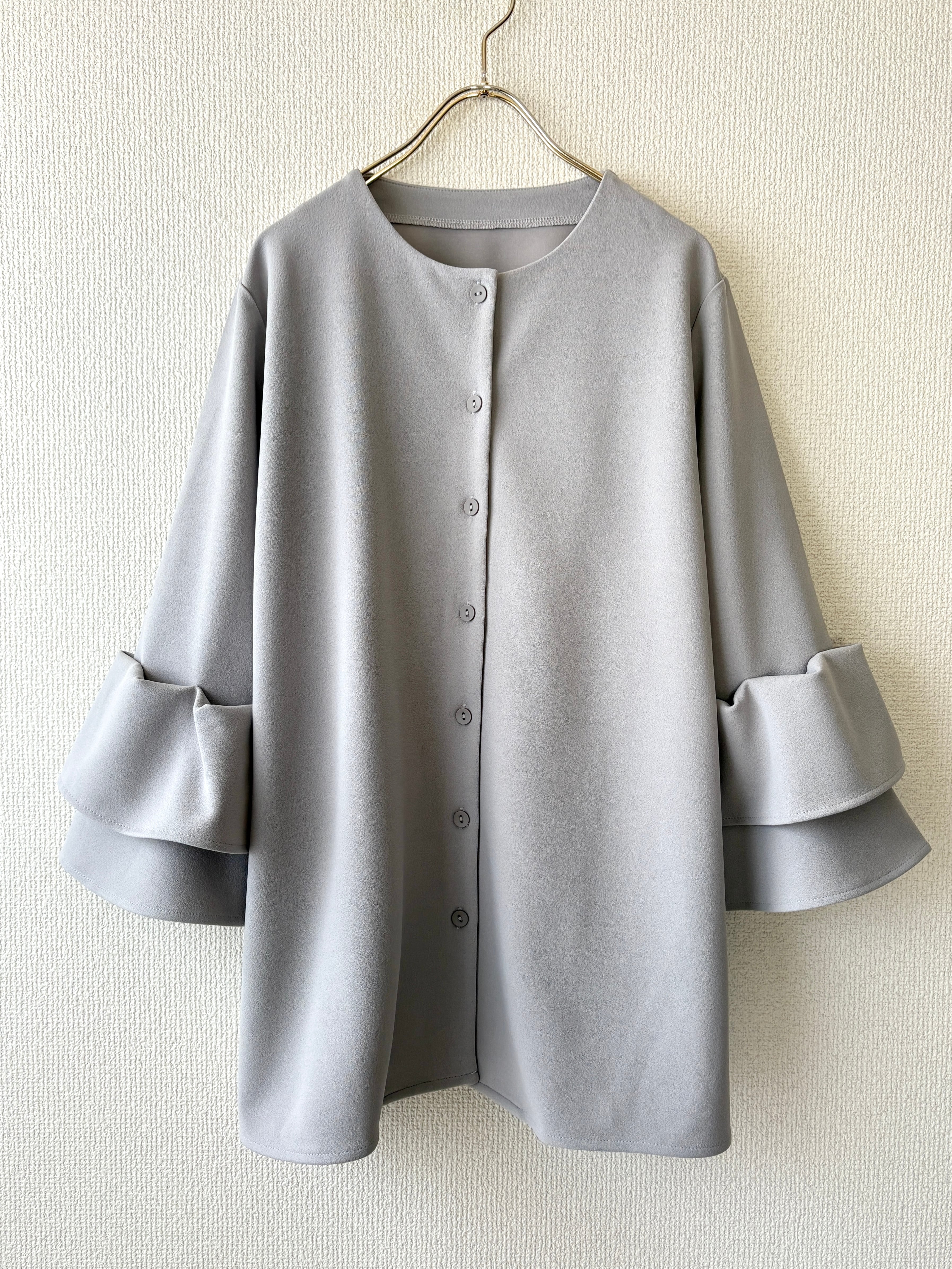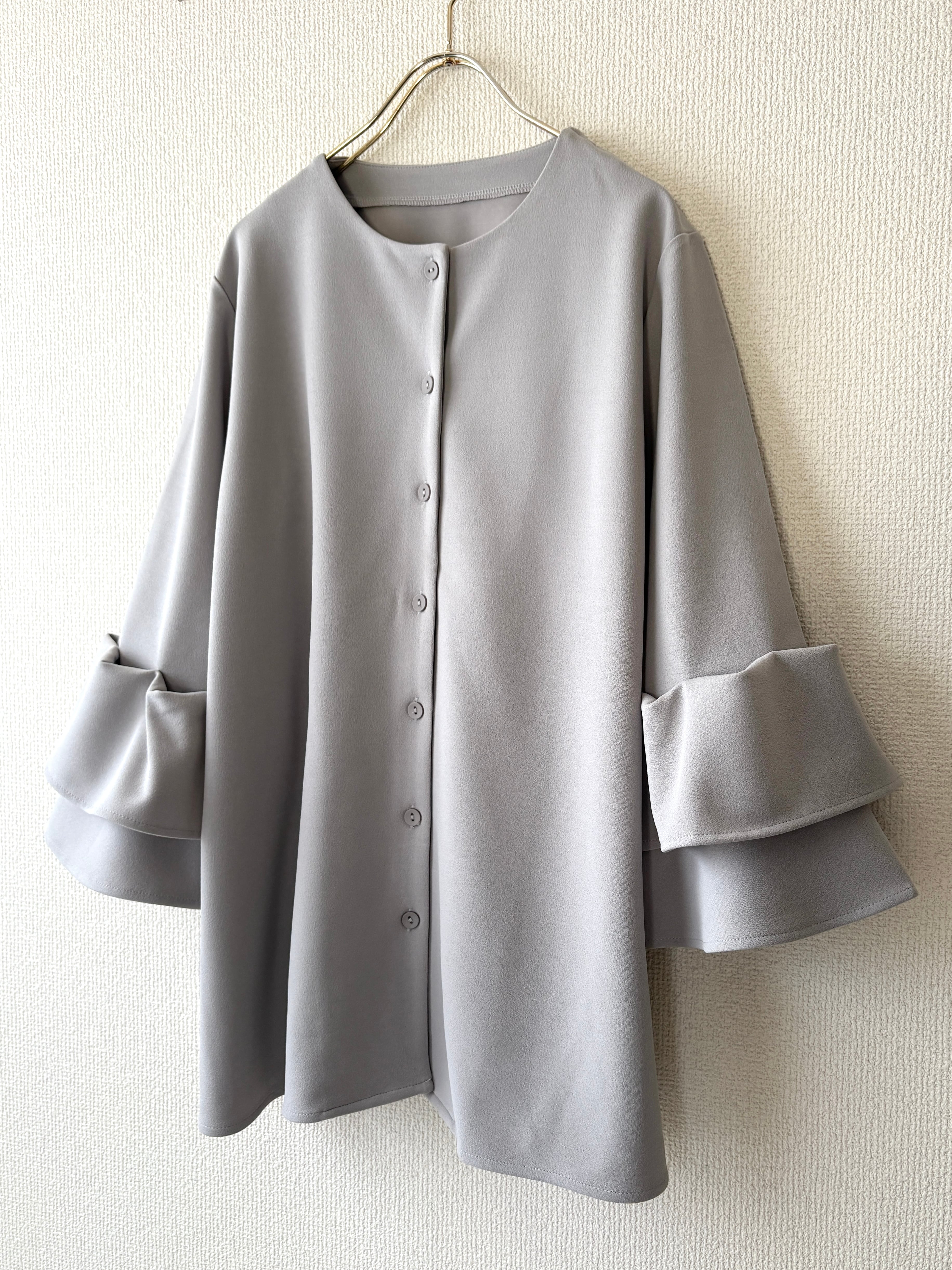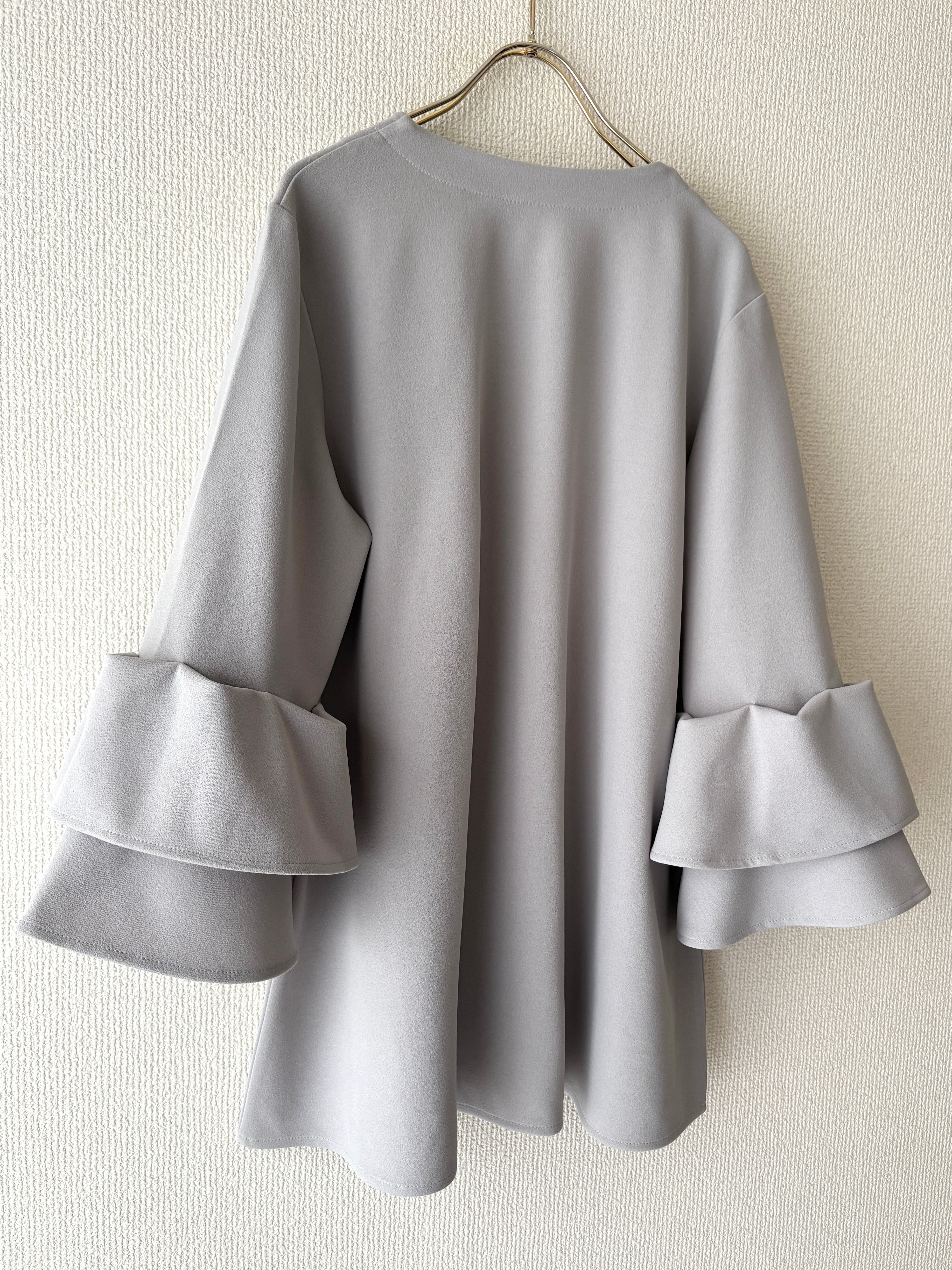袖には繊細なティアードディテールが施され、シンプルながらも華やかさを感じさせる一枚です。