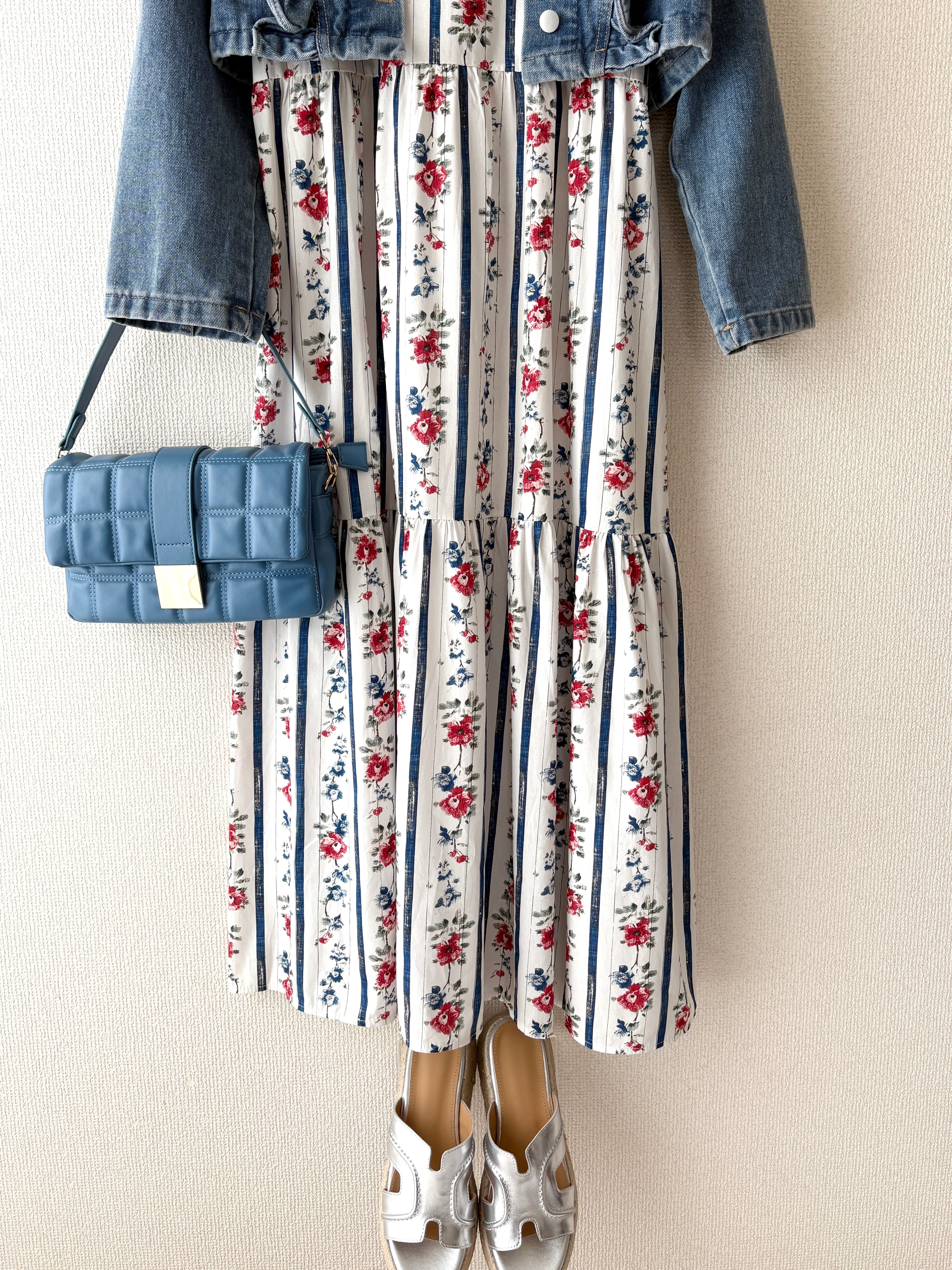 ストライプ柄がポイントになり縦長ラインのすっきりとした印象に。
