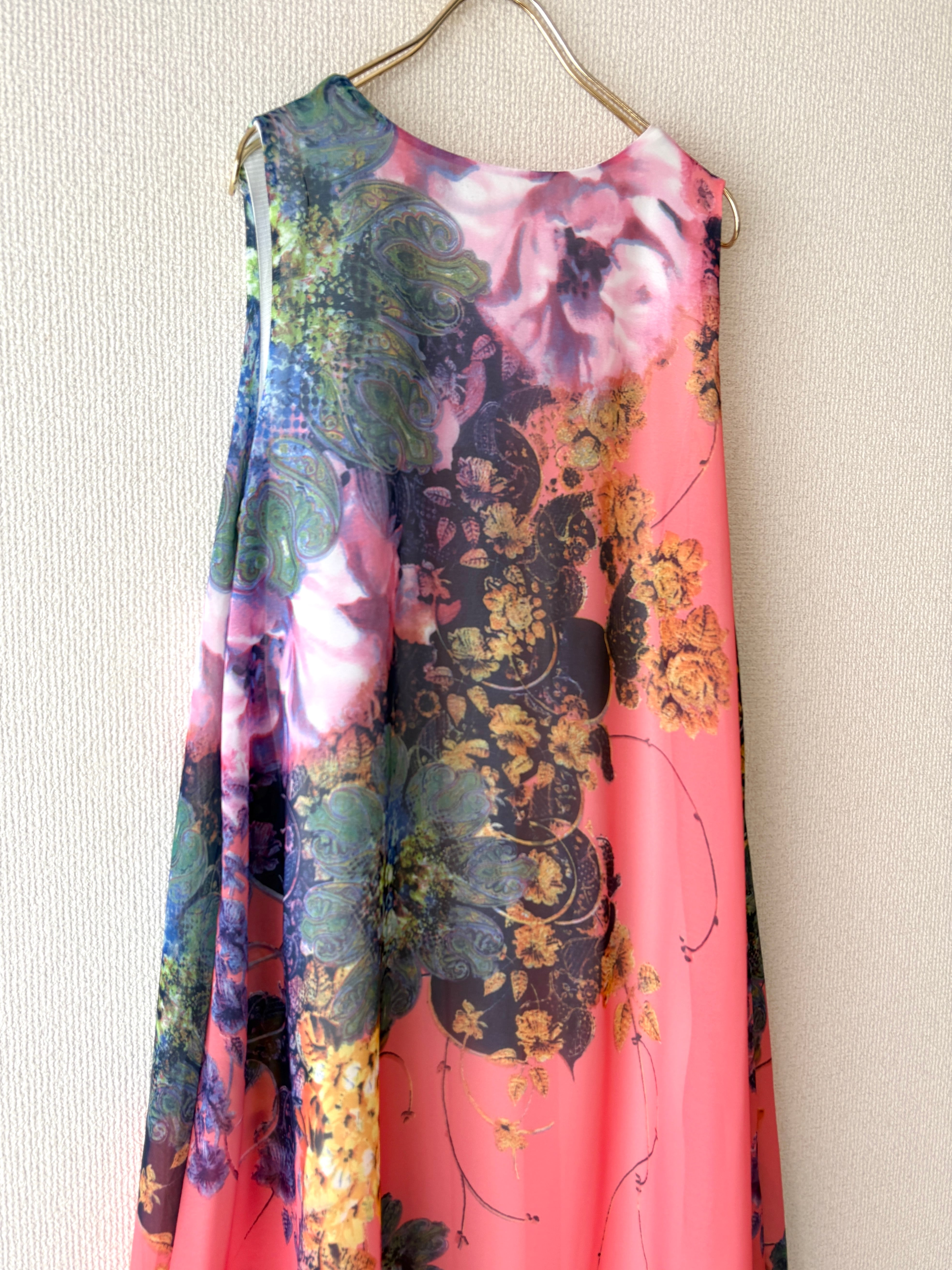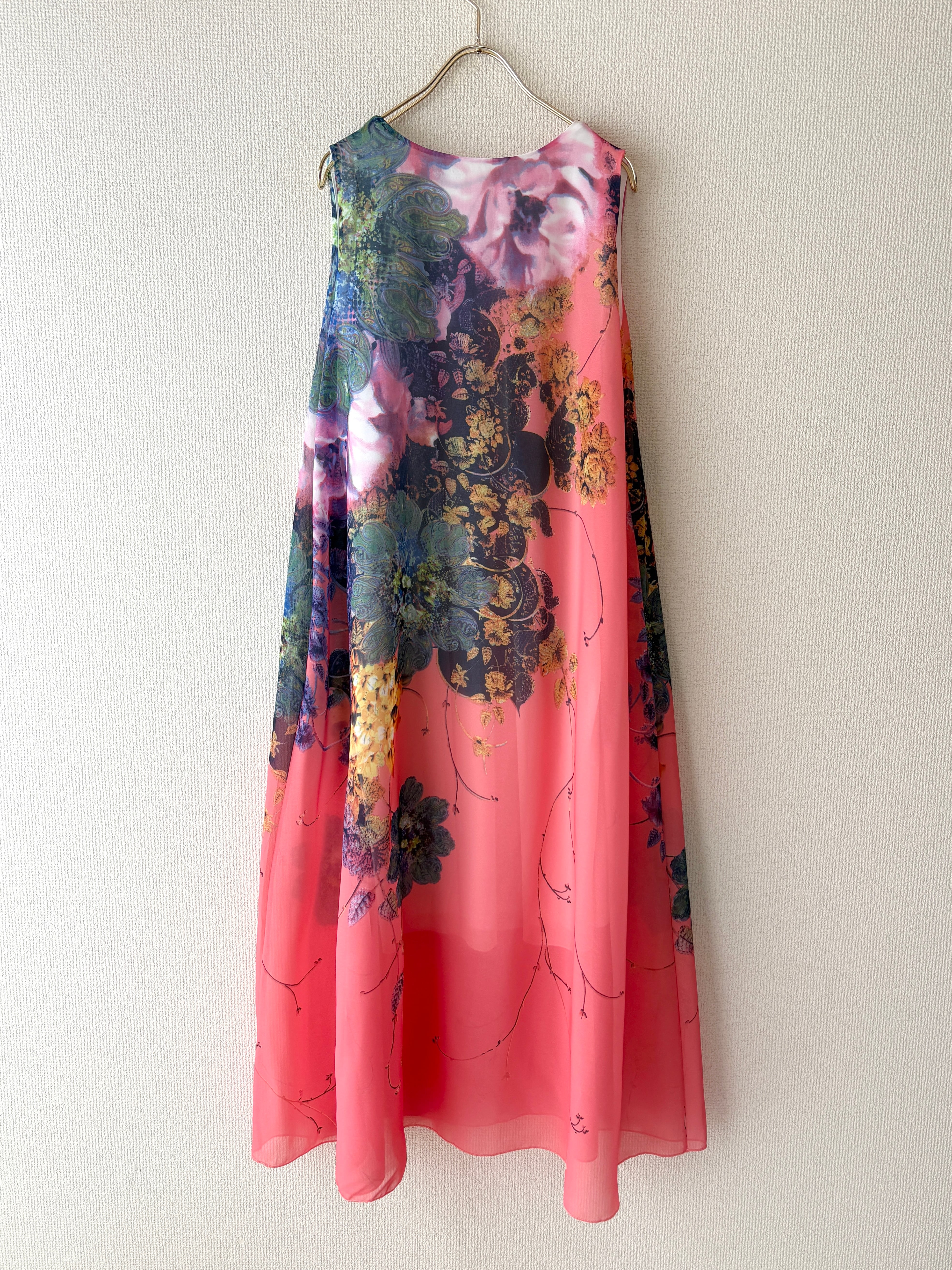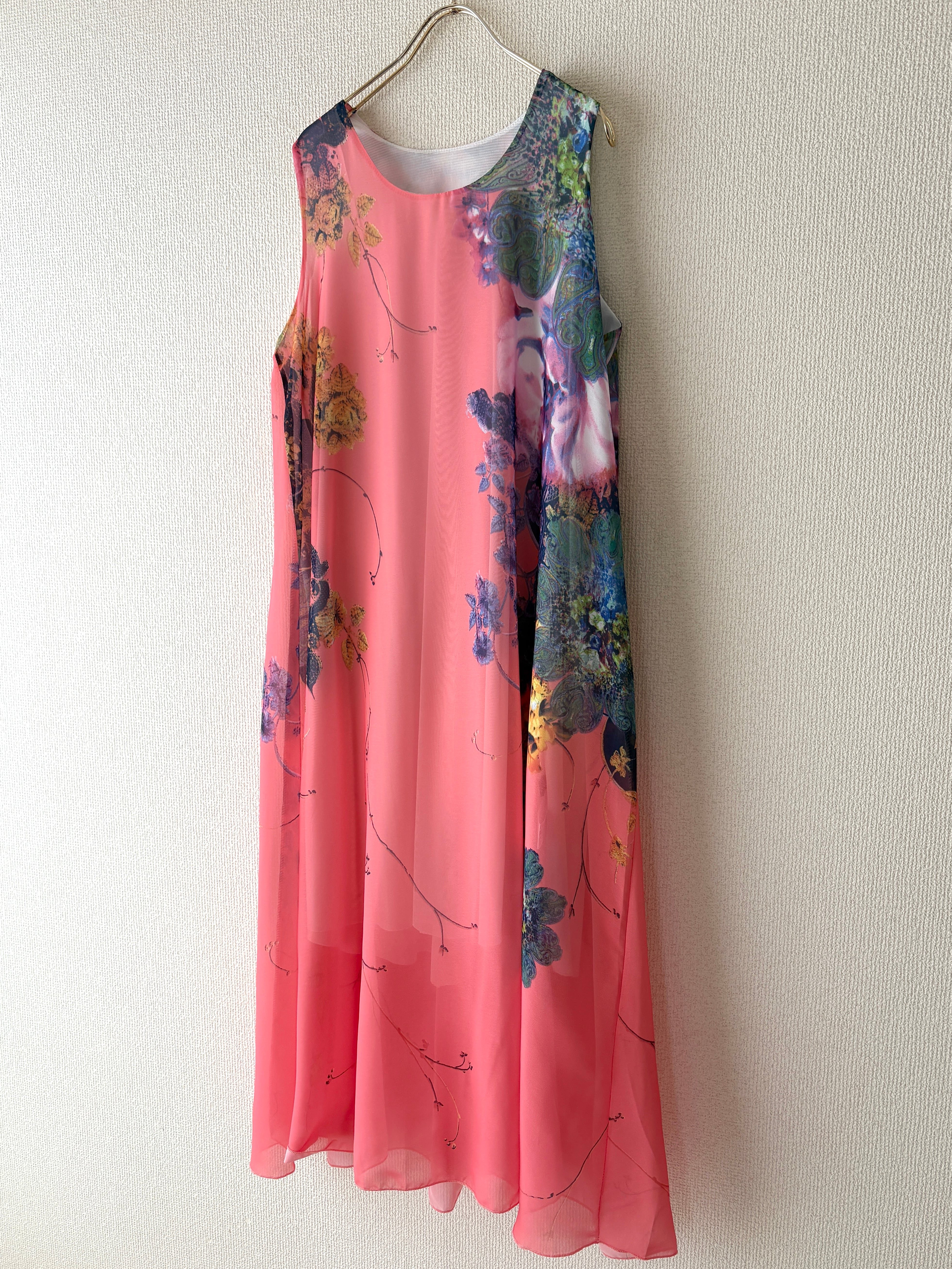 アートのような花柄が目を惹くワンピースです。