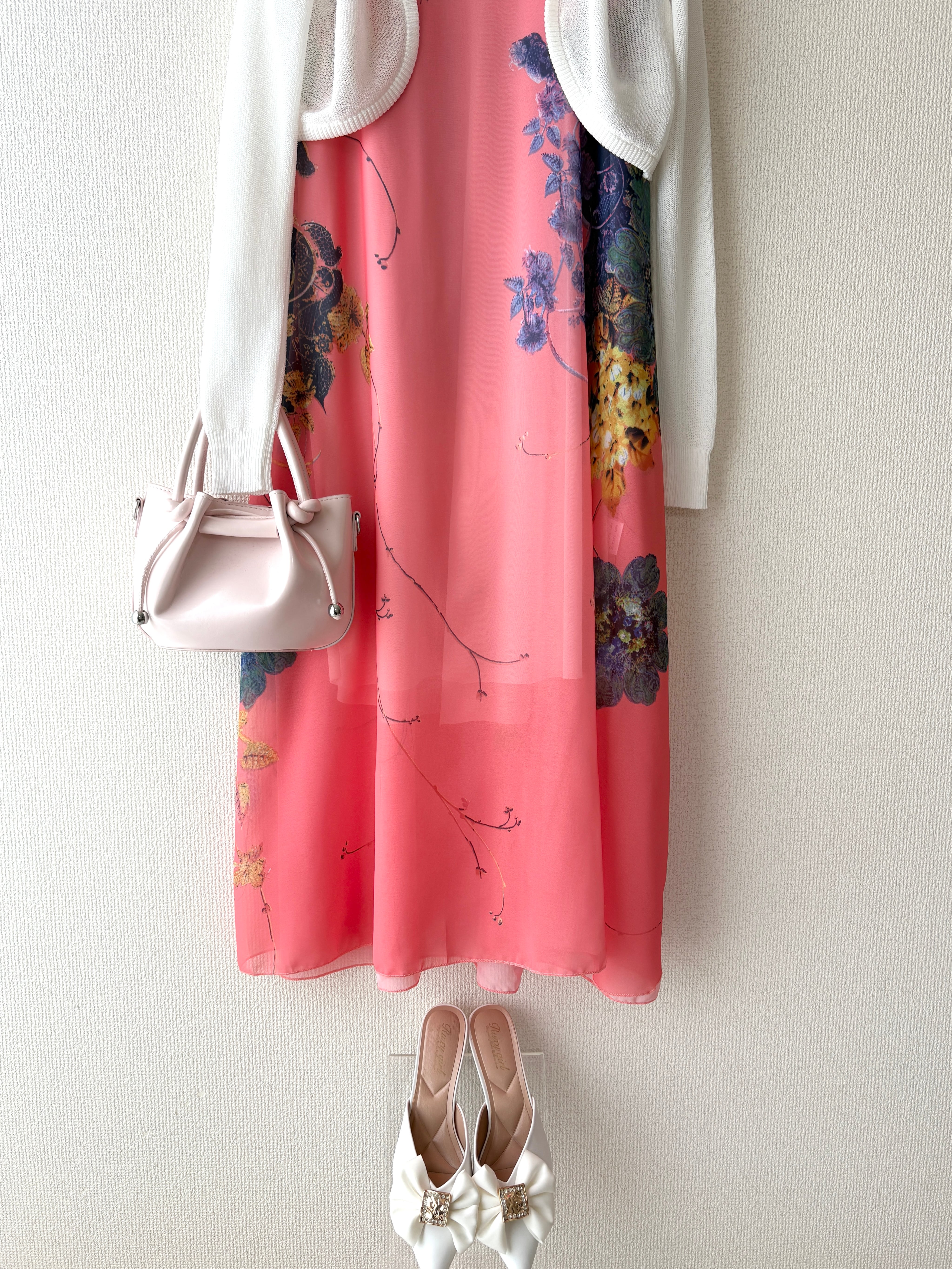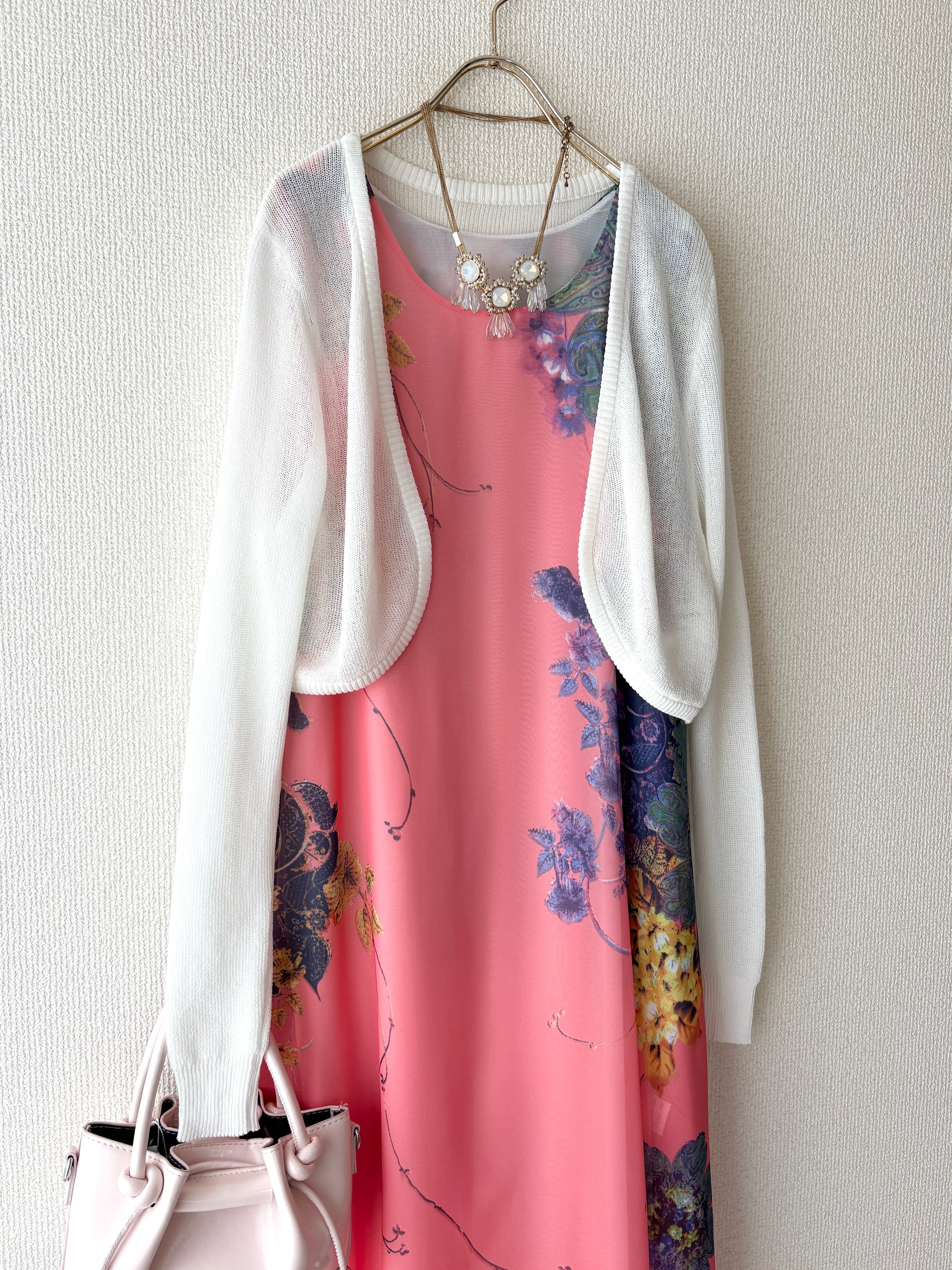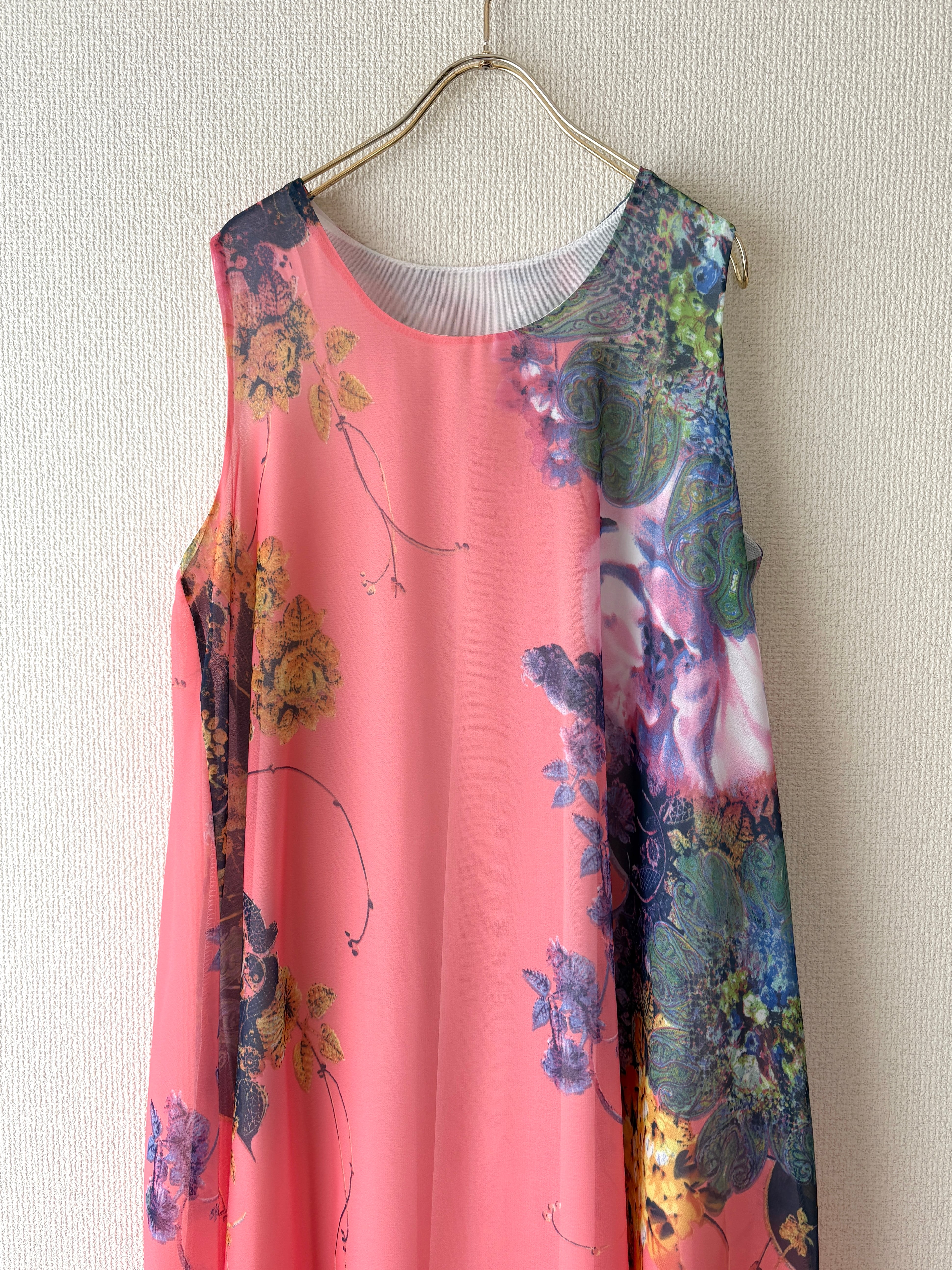 アートのような花柄が目を惹くワンピースです。