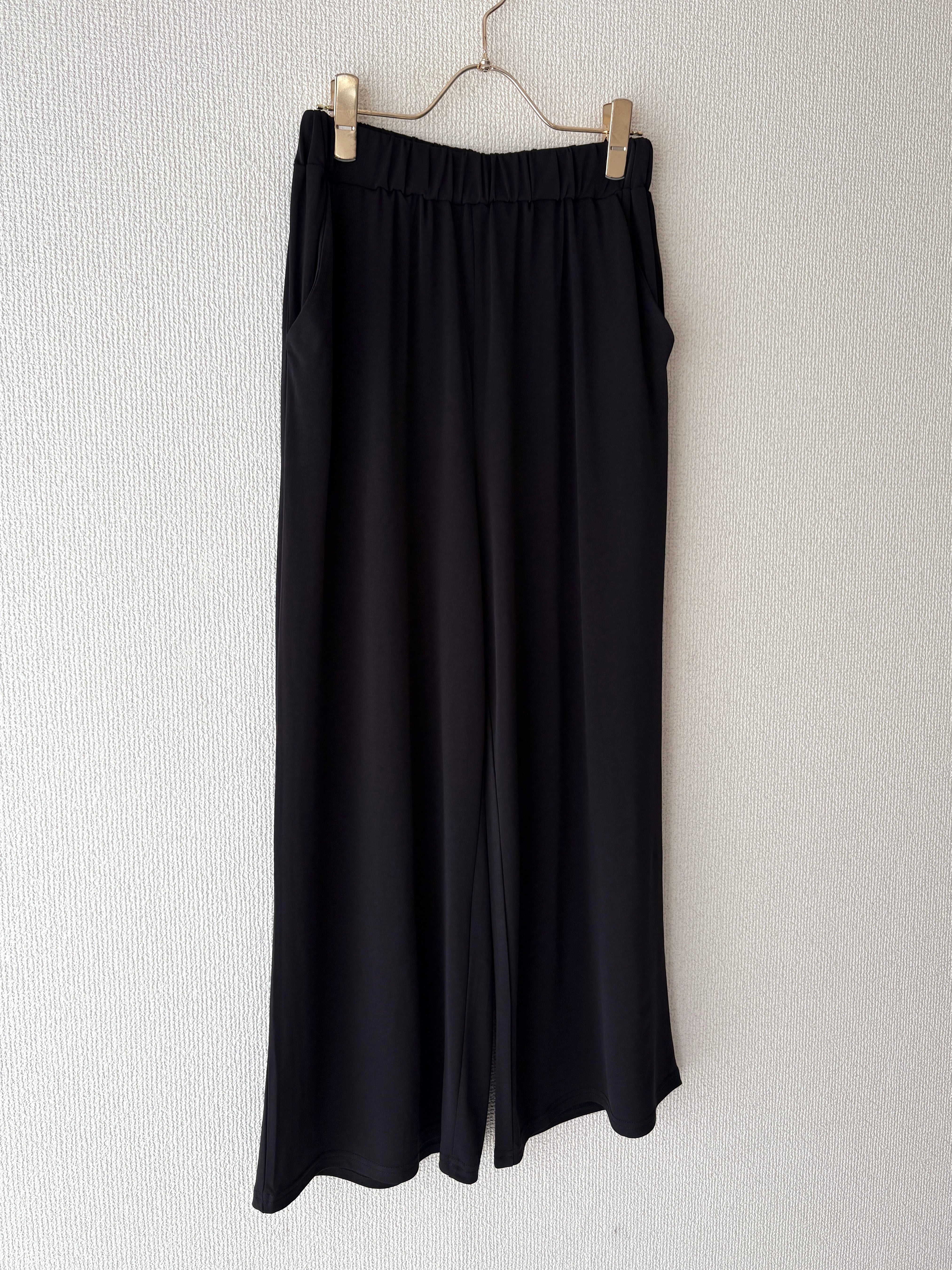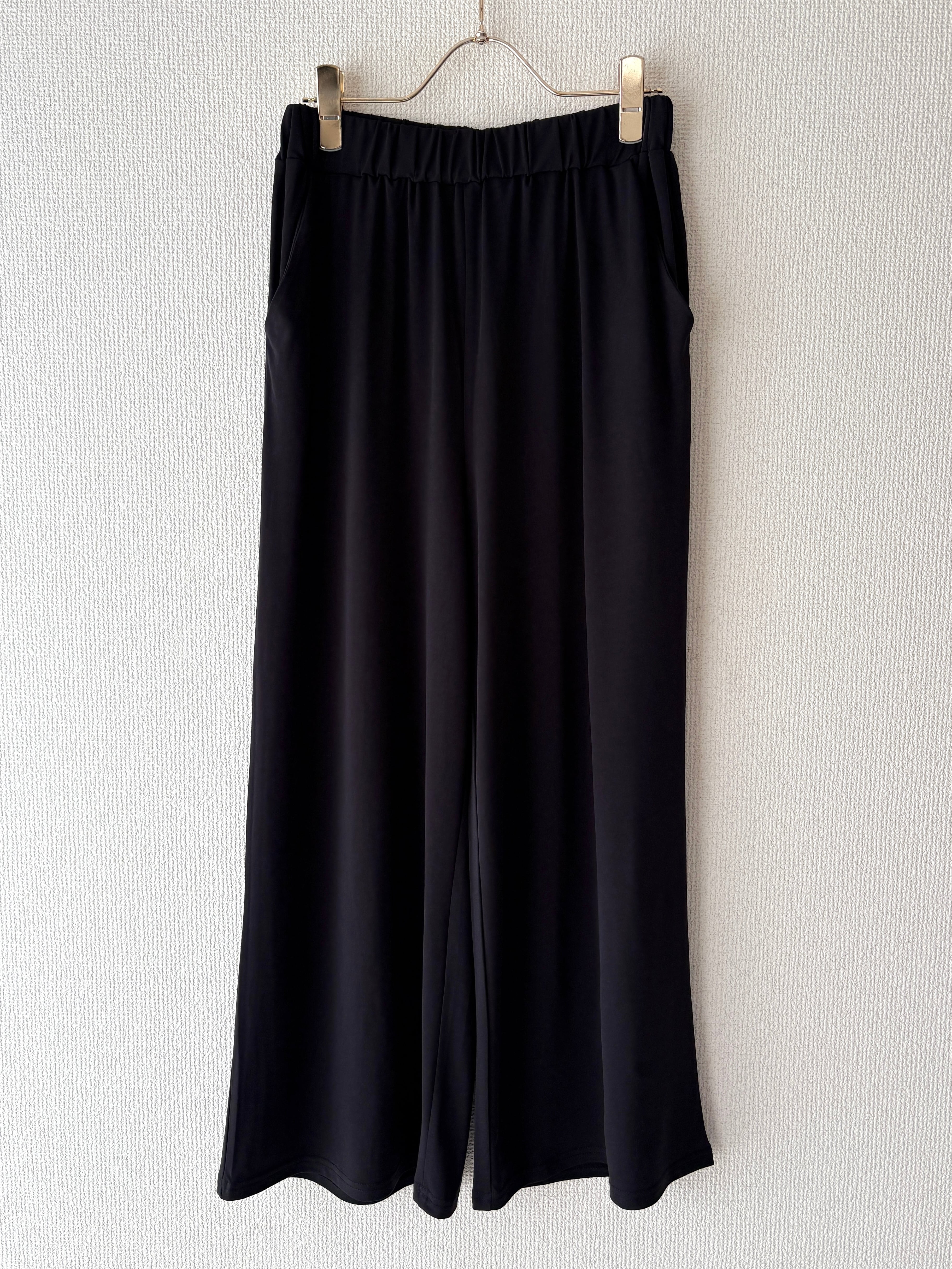 ゆったりとしたワイドシルエットとウエストゴム仕様で着心地が楽々に◎