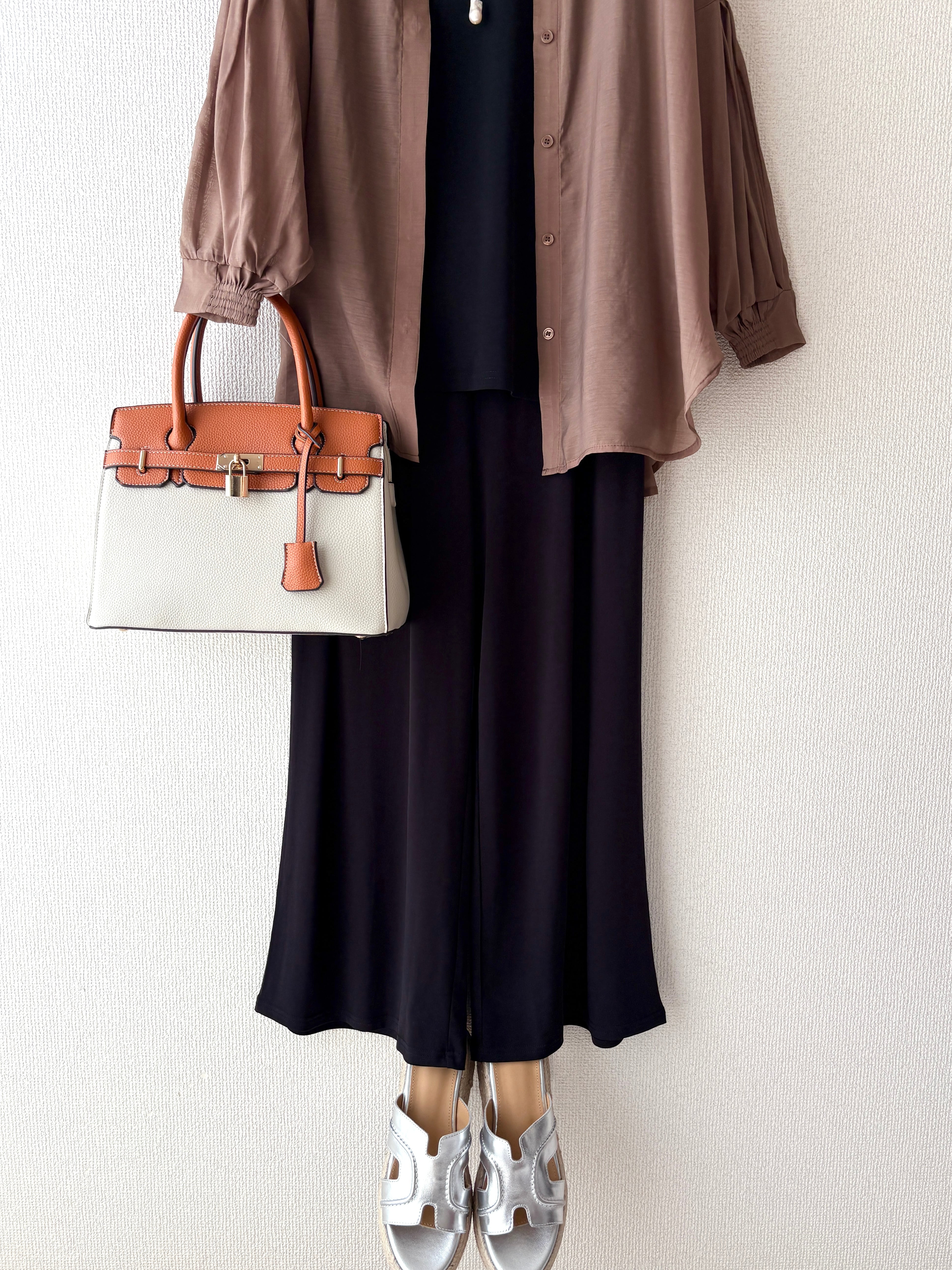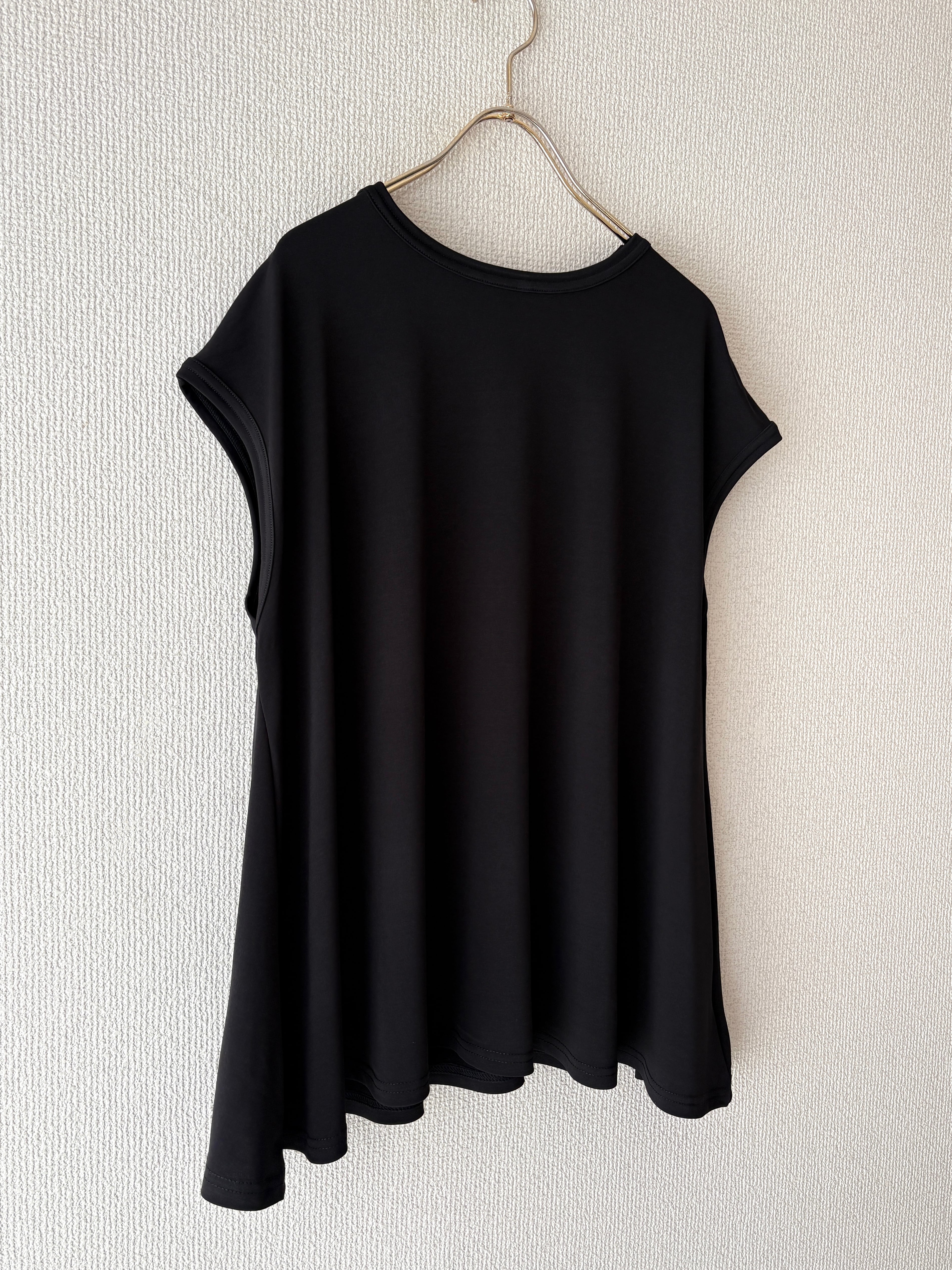 肩まわりに少しかかる袖丈で、気になる二の腕もさりげなくカバーしてくれます。