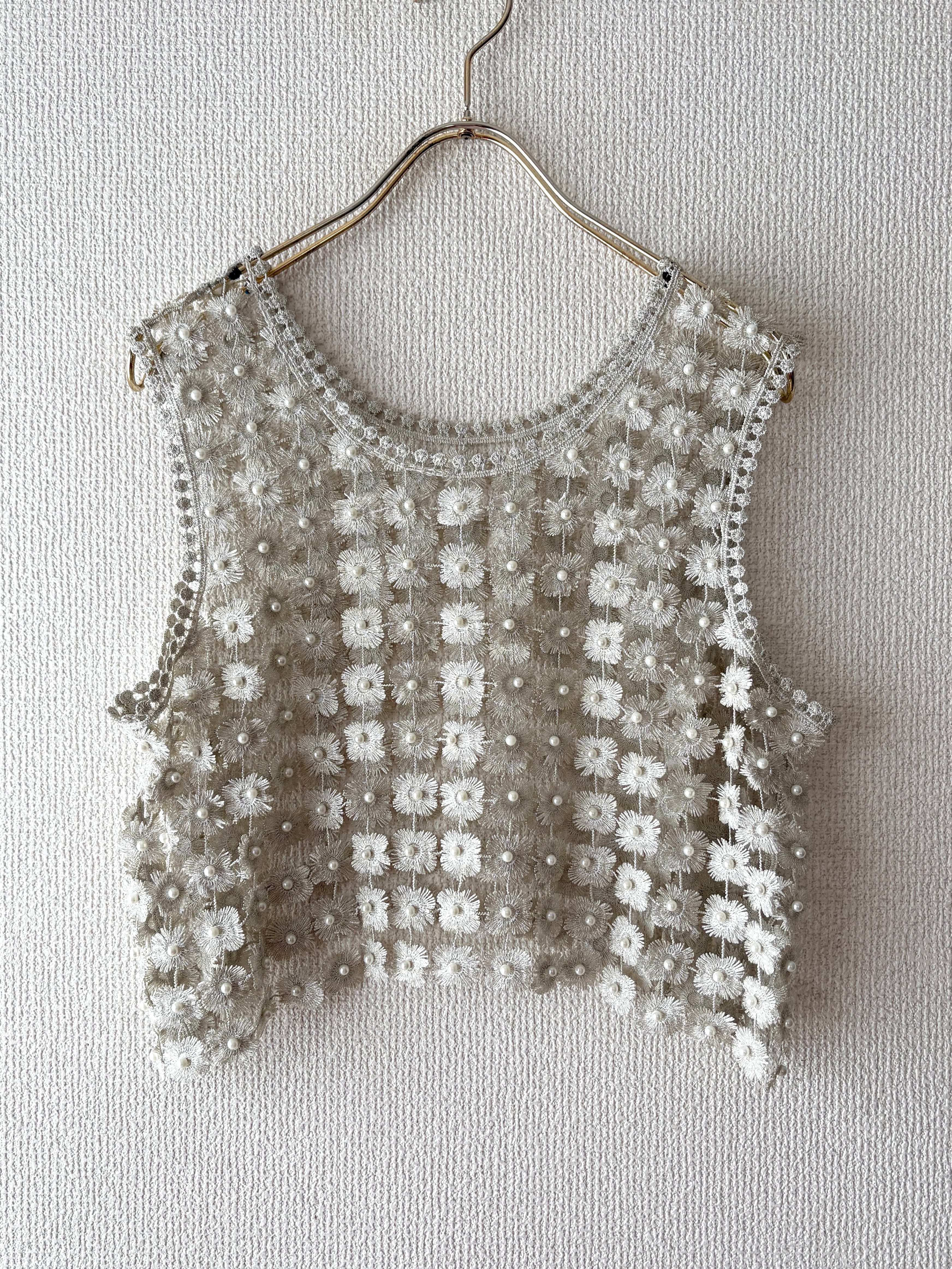 フラワーレースにパールを散りばめた、華やかさたっぷりのアイテムです。