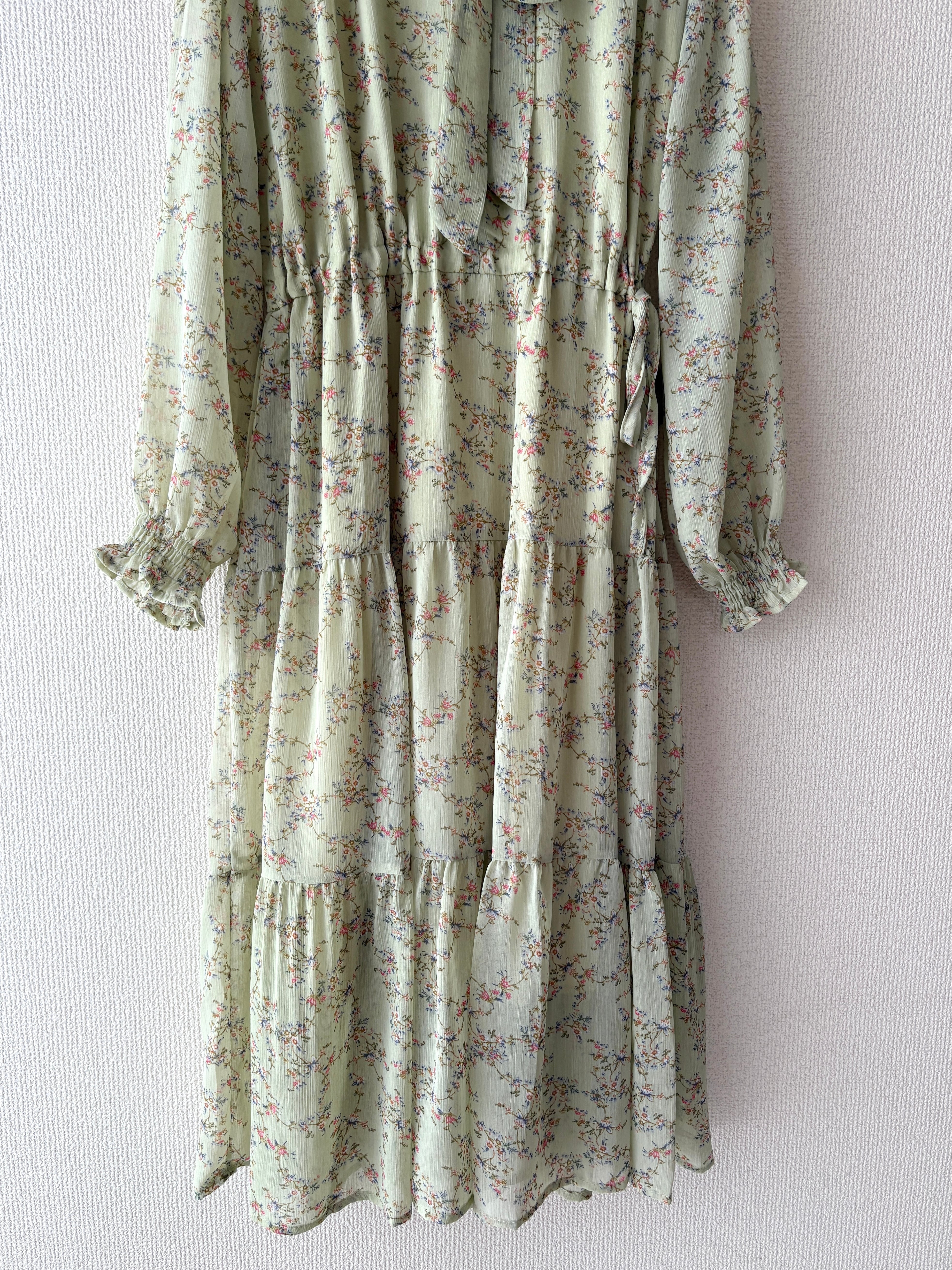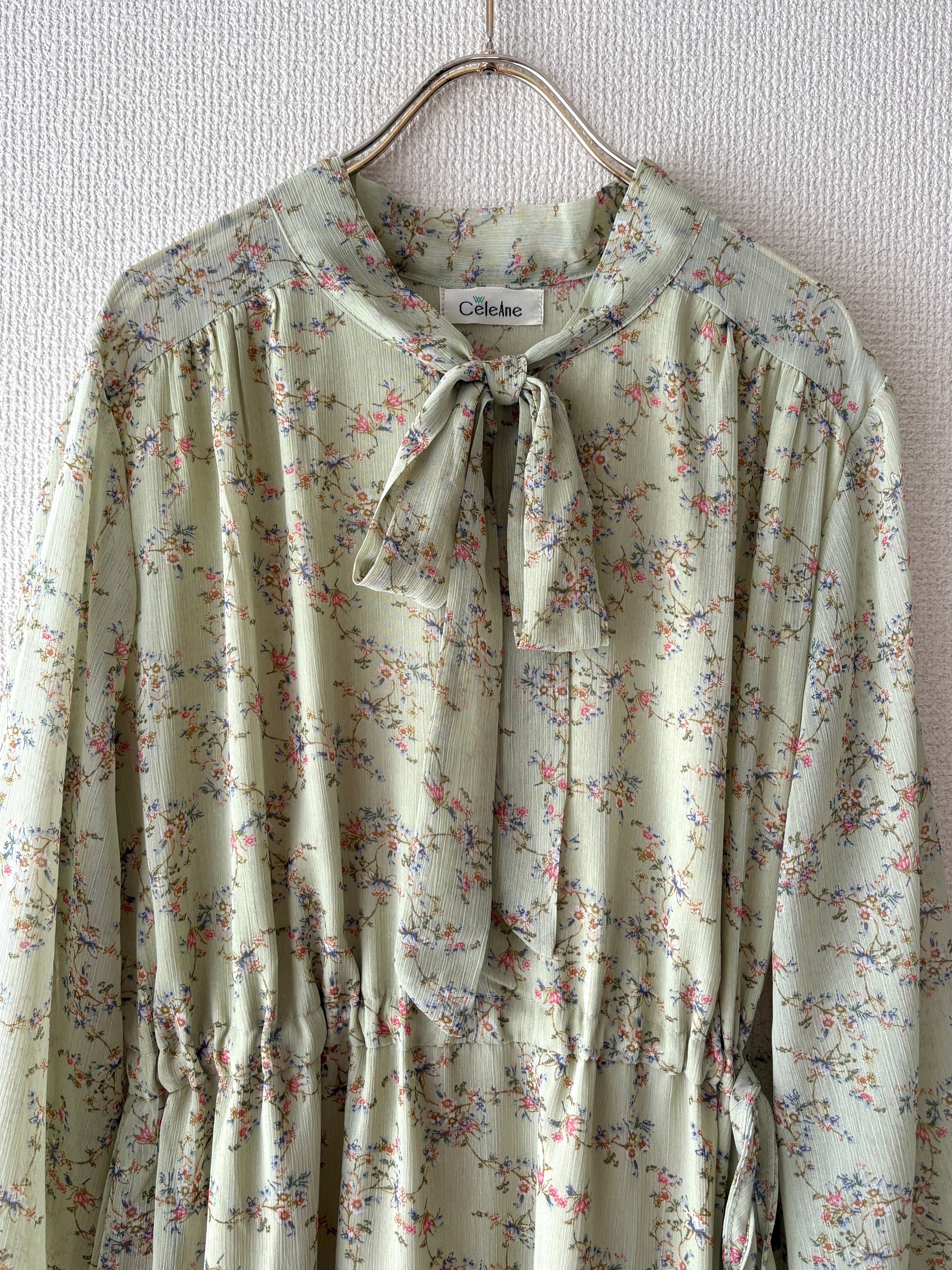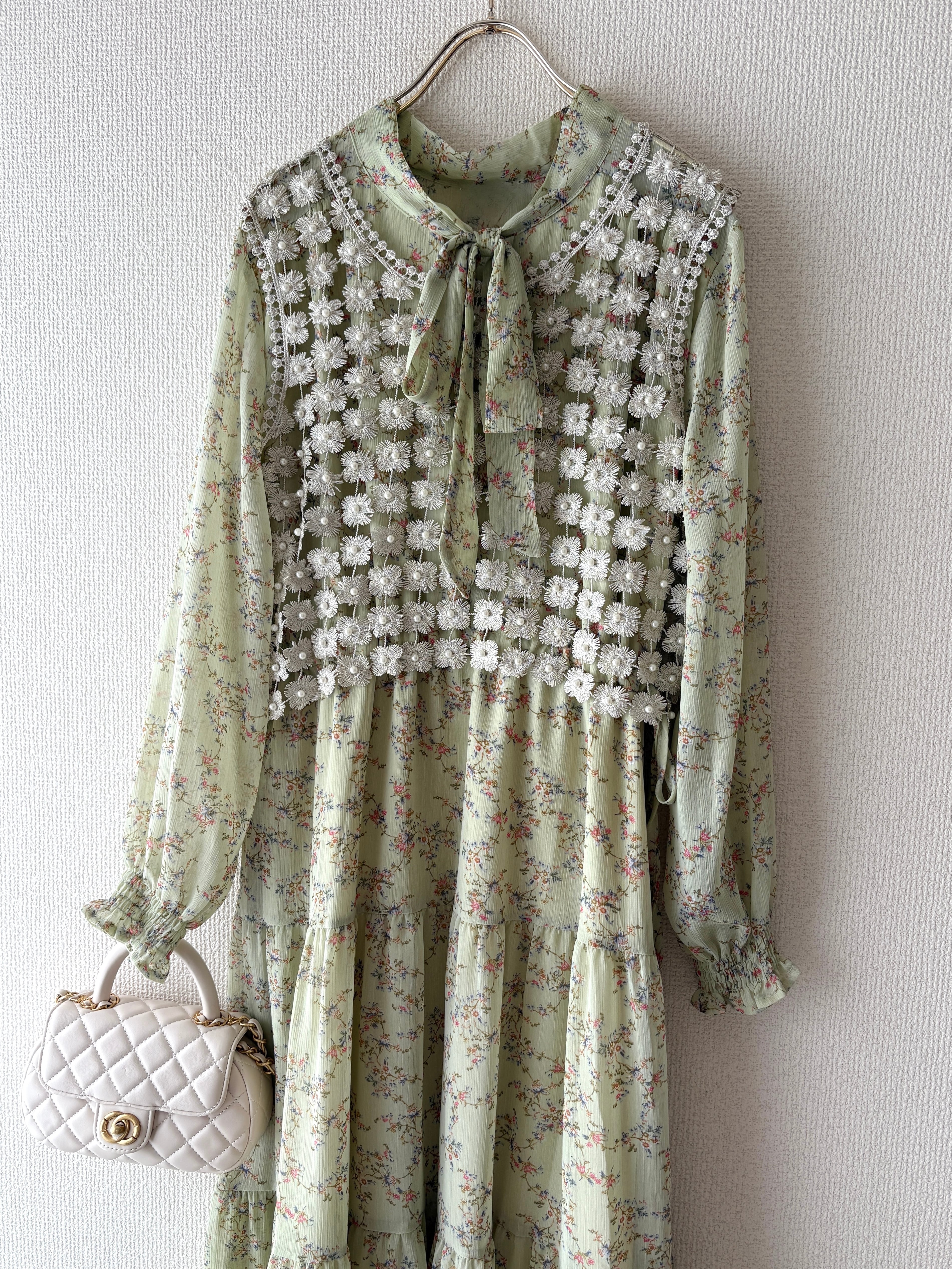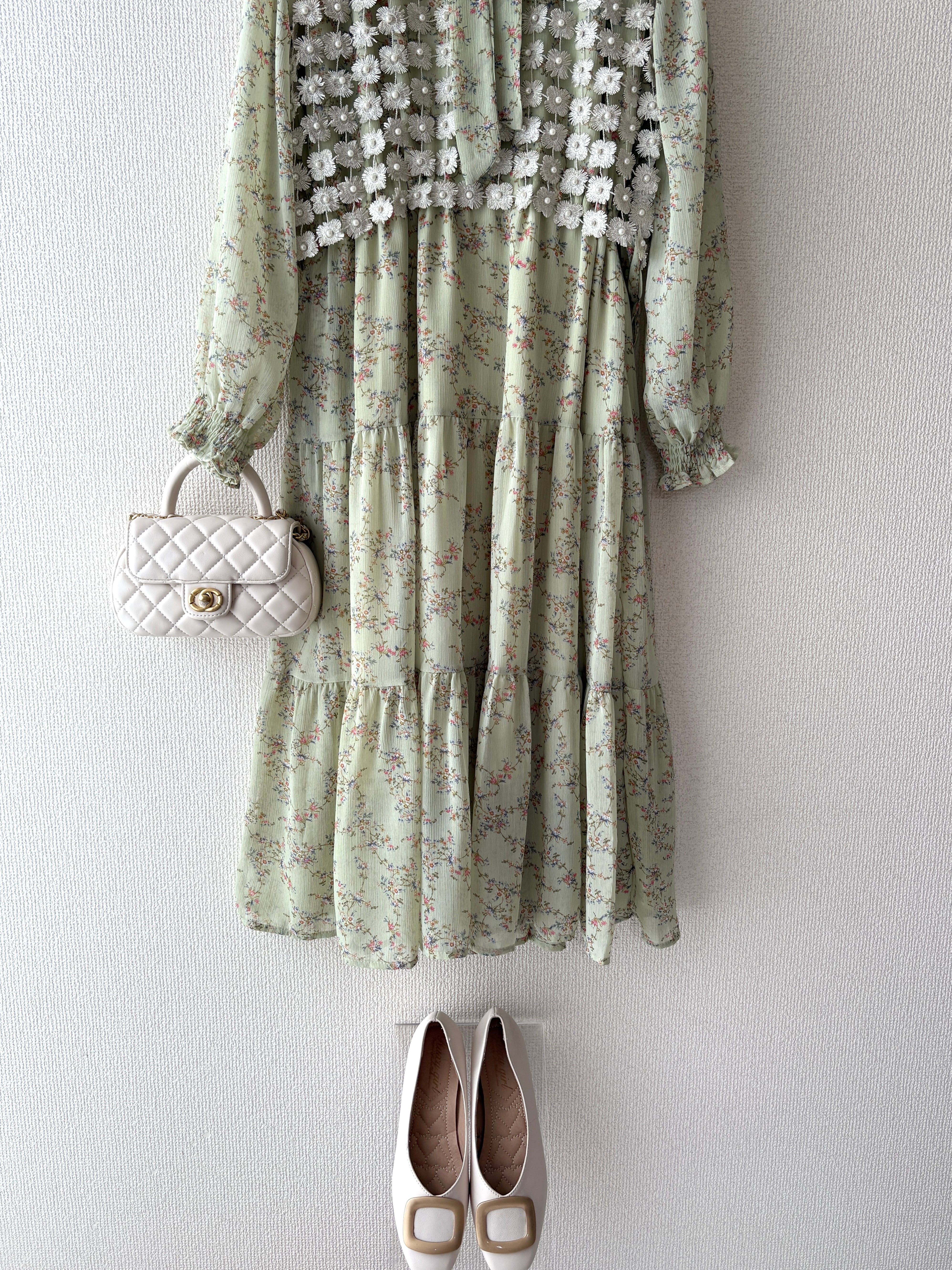 全体にあしらわれた繊細な小花柄が、春夏の柔らかなムードを演出します。