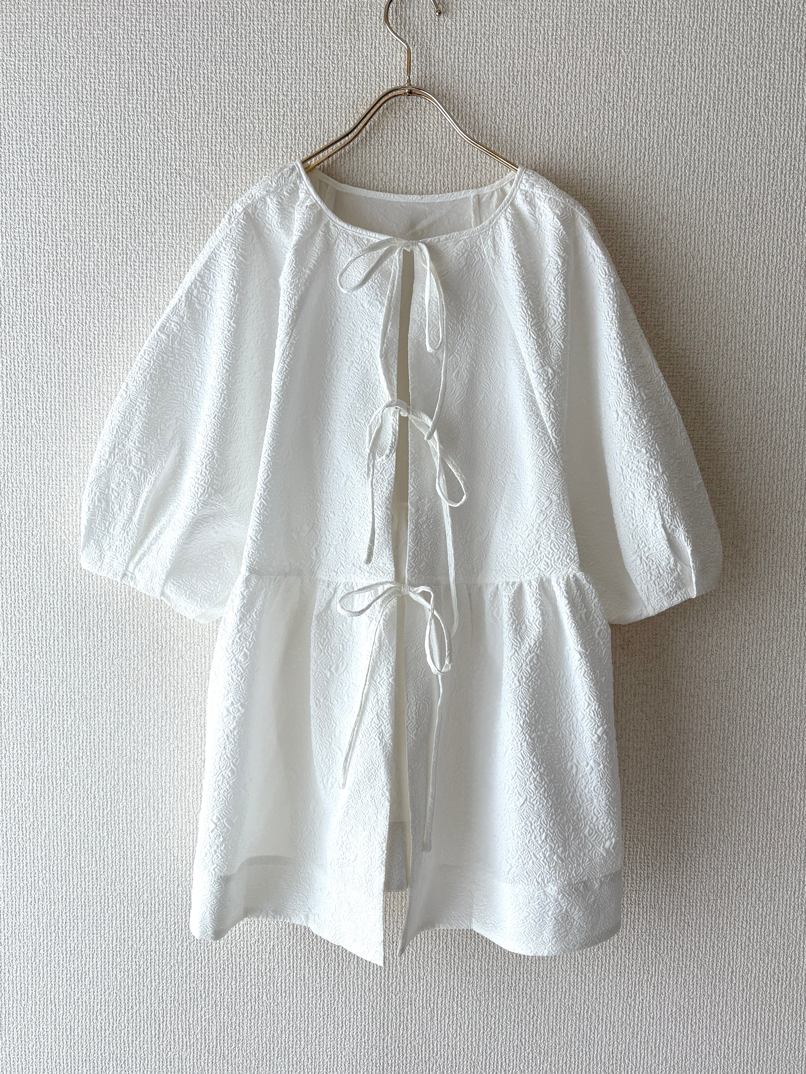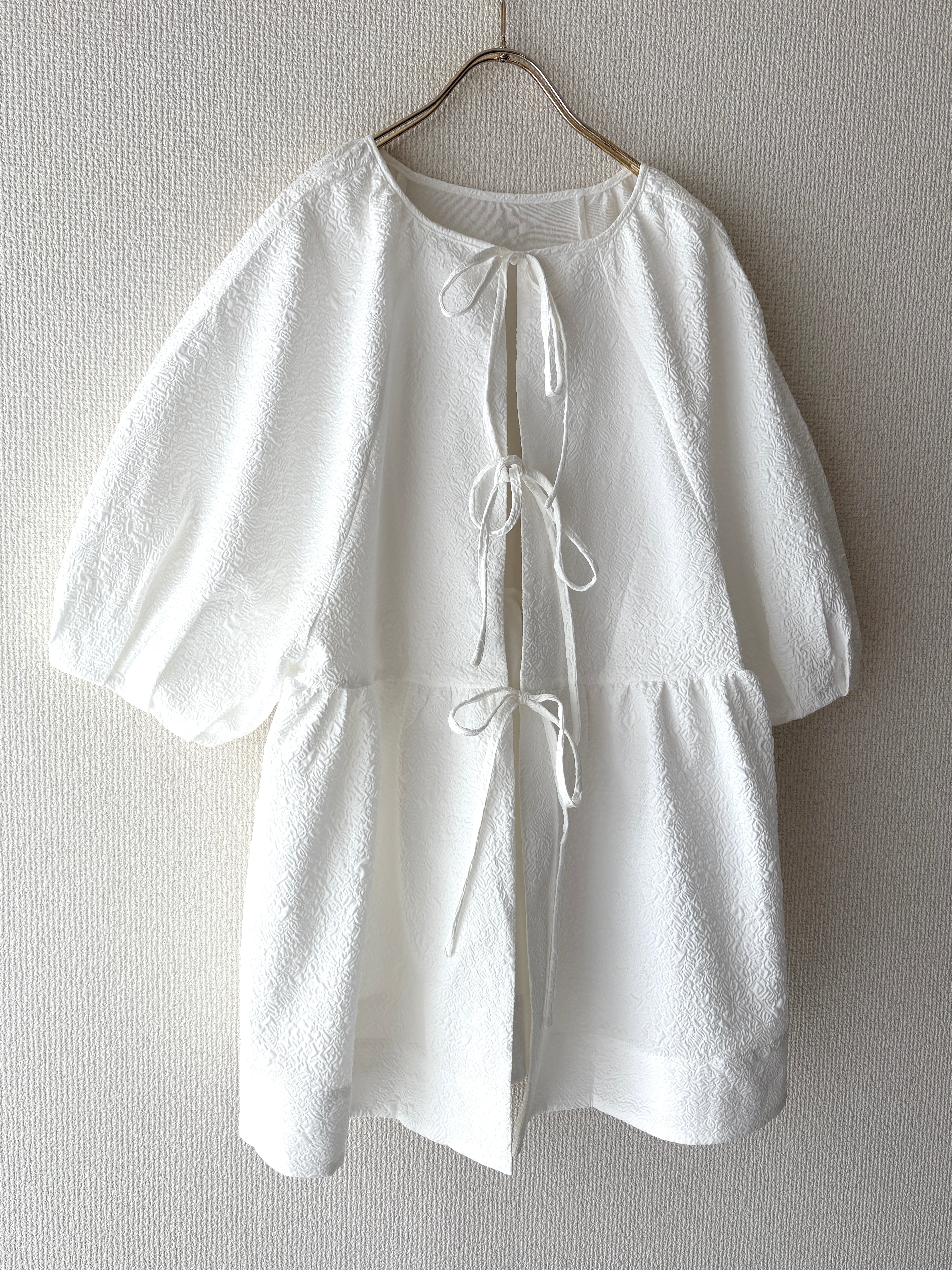 表情のある表面感とペプラムデザインが上品な女性らしさを演出してくれるブラウスです。