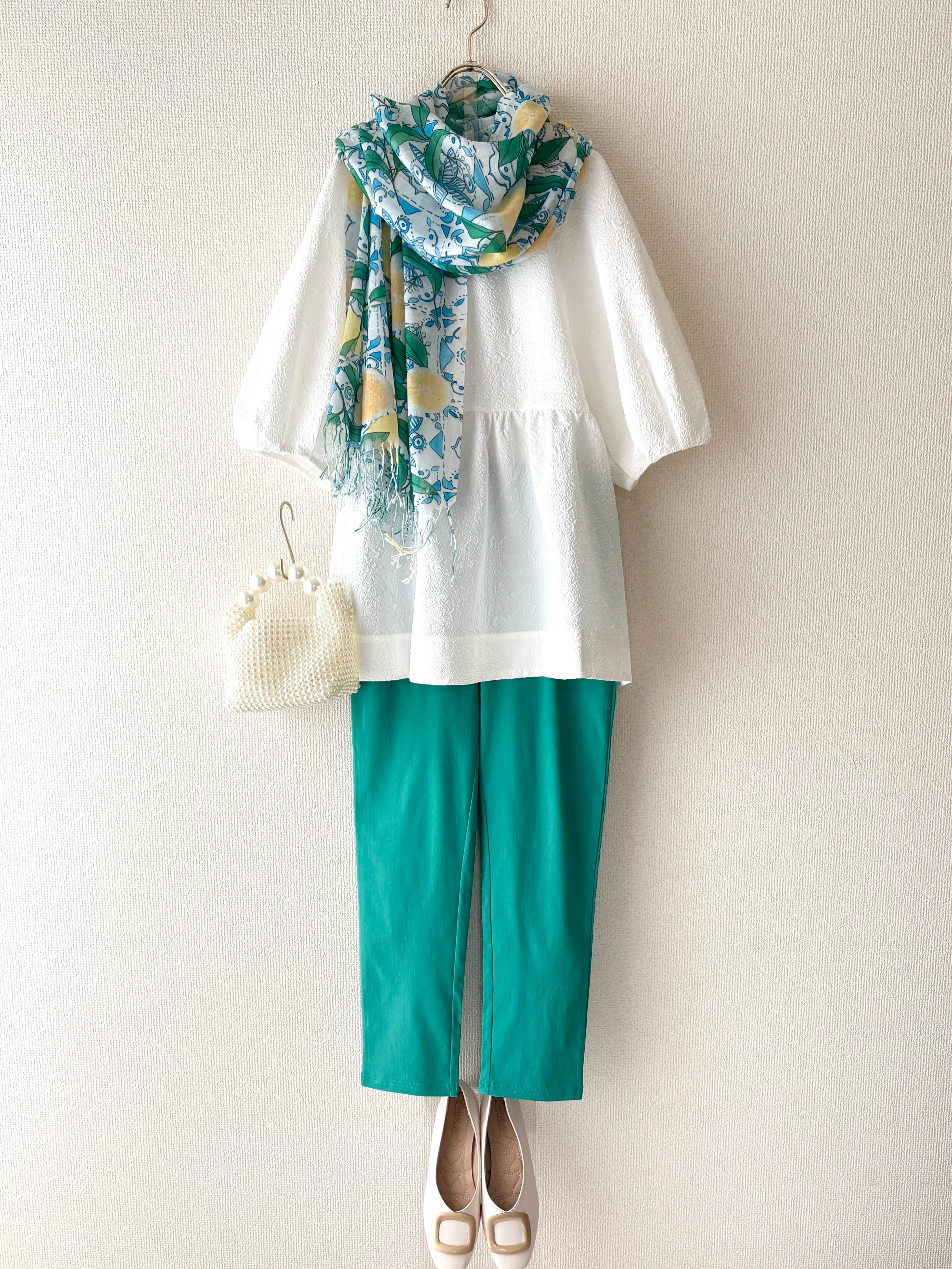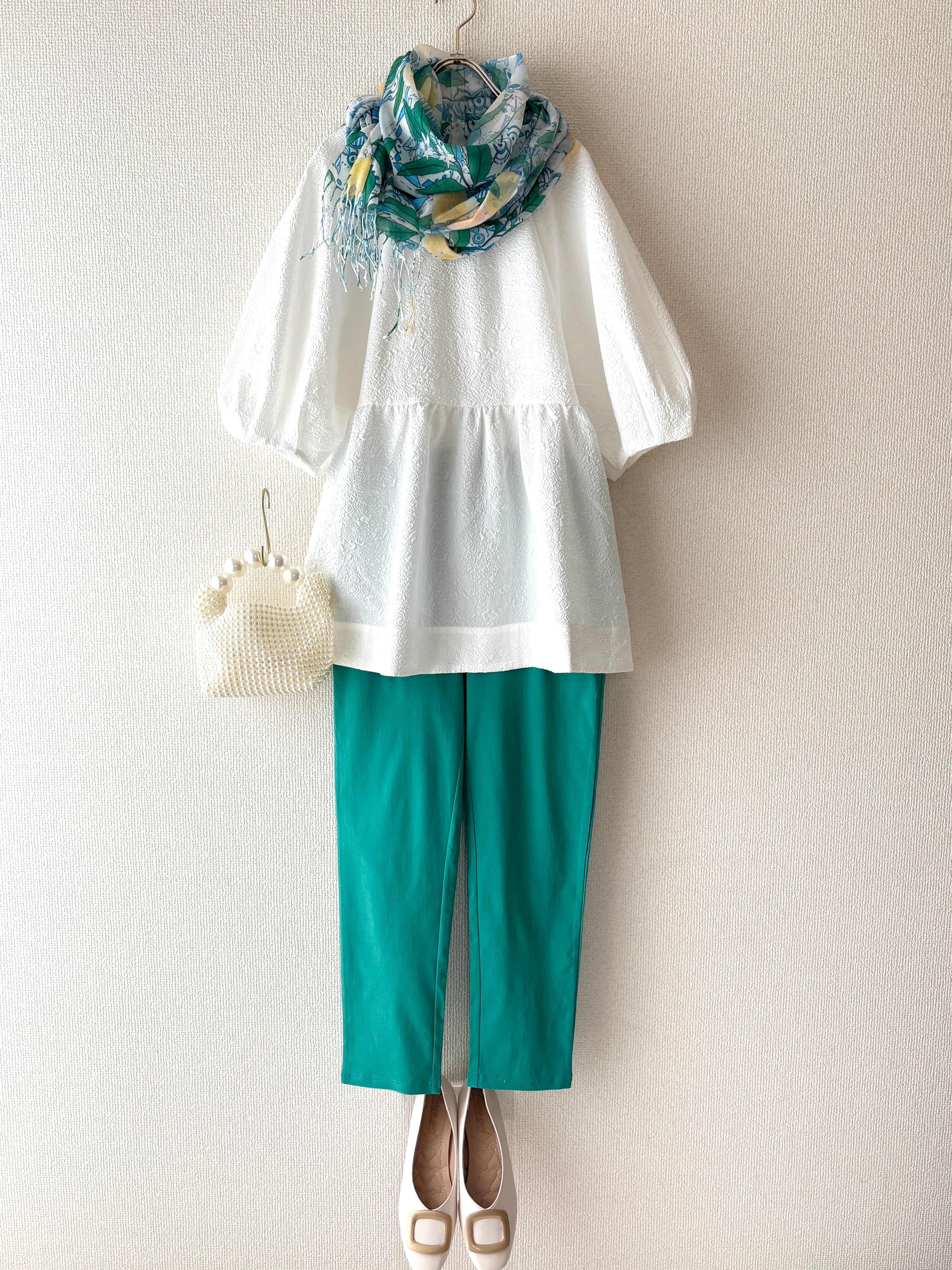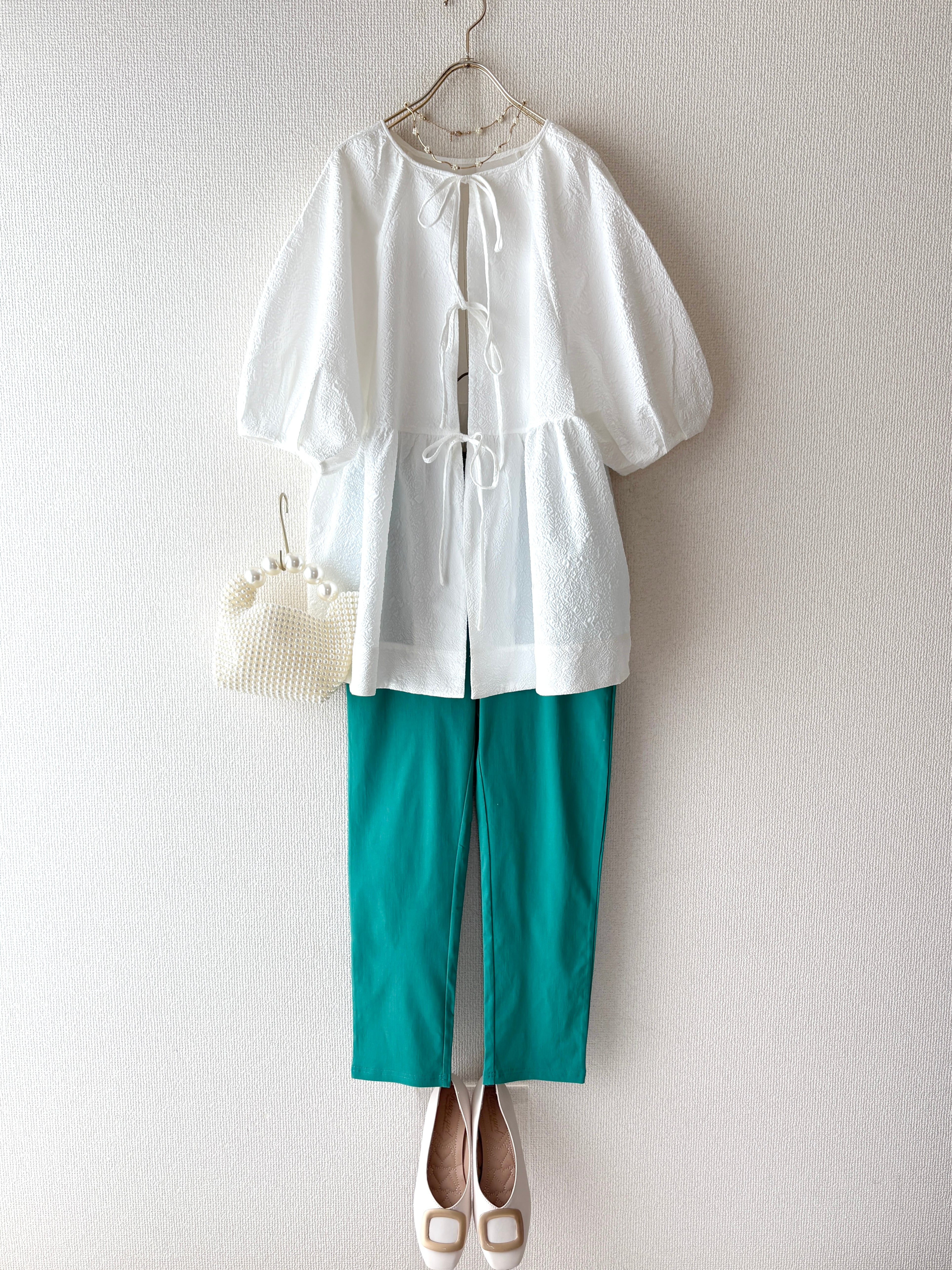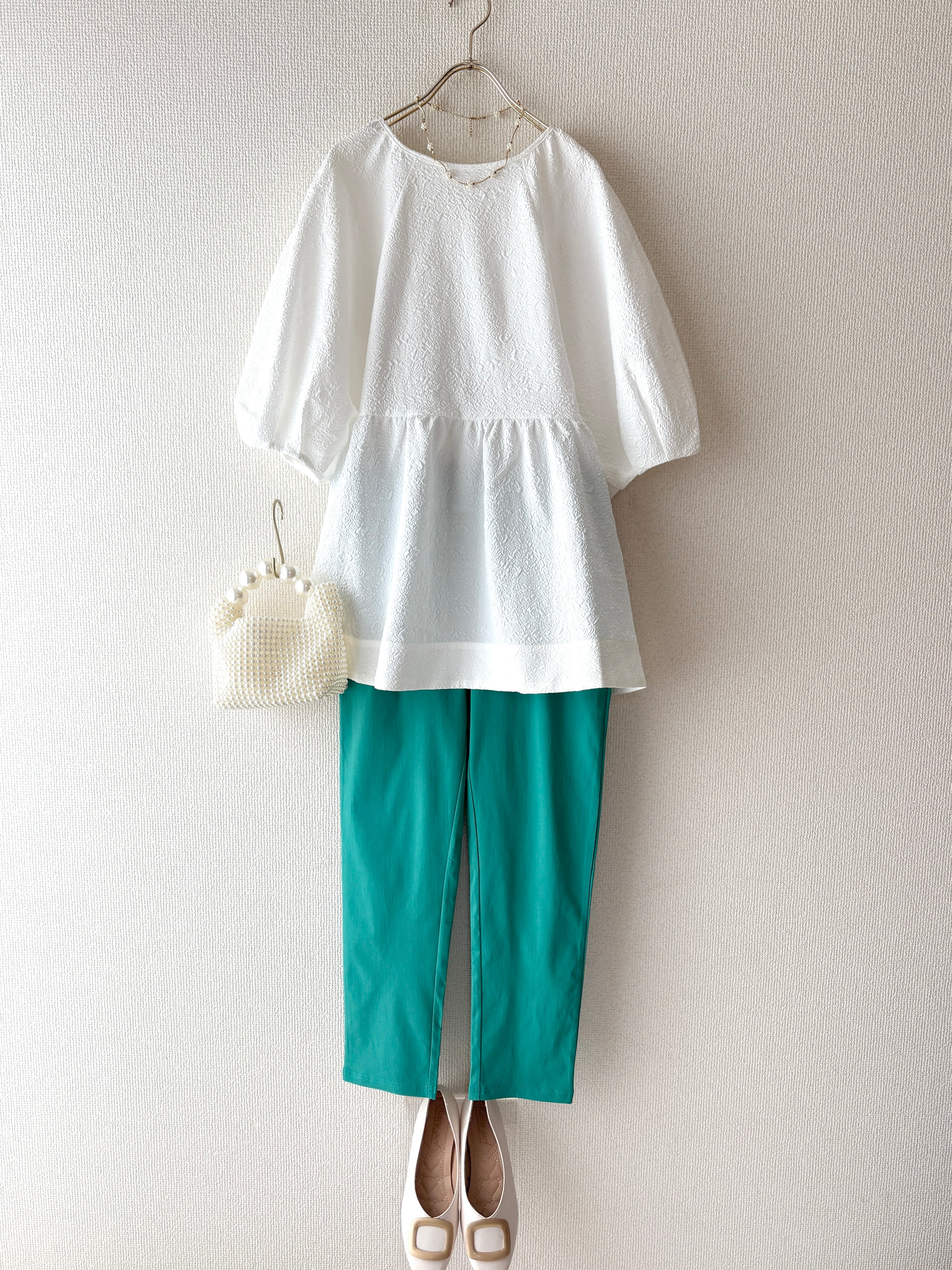 甘めな印象ですがジャガード素材なので高見えし、大人っぽく着こなせます。