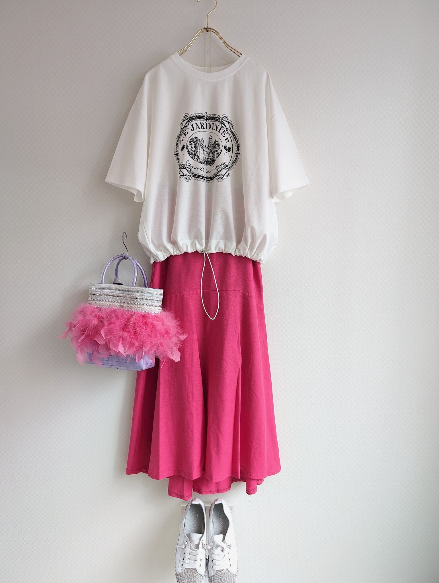 ウエストがゴムになってますが、お腹ヒップ周りがスッキリしているデザインです。