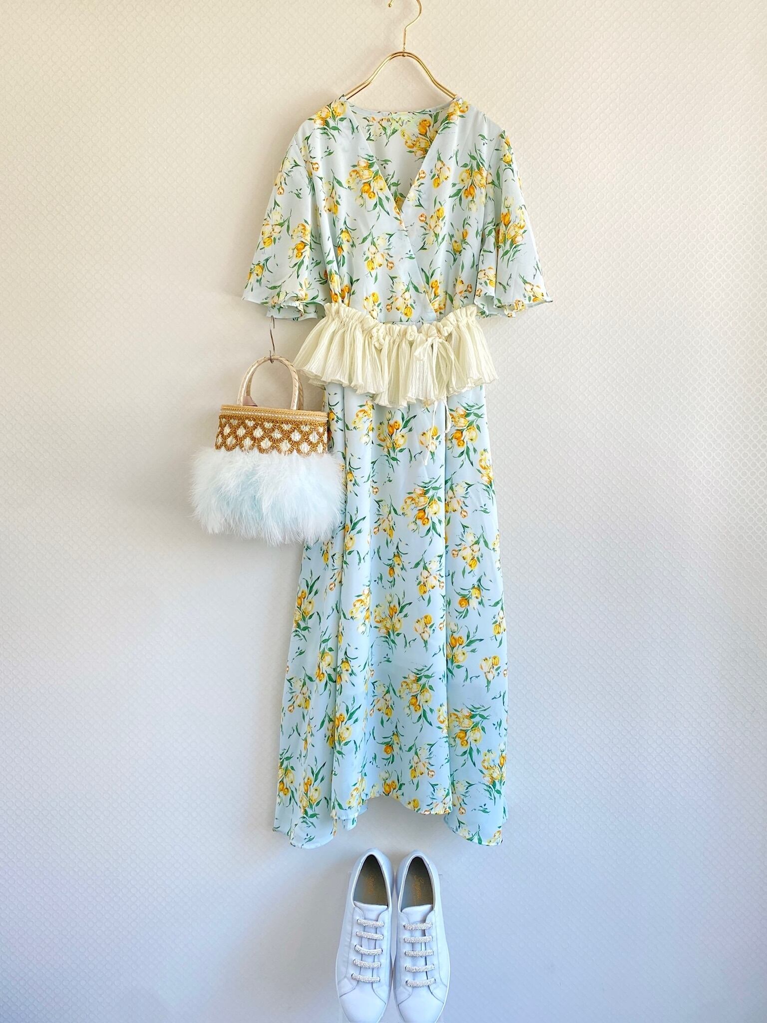 夏らしい花柄ワンピース。1枚で着ても可愛いです。