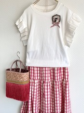 お袖のフリルが可愛いTシャツです。