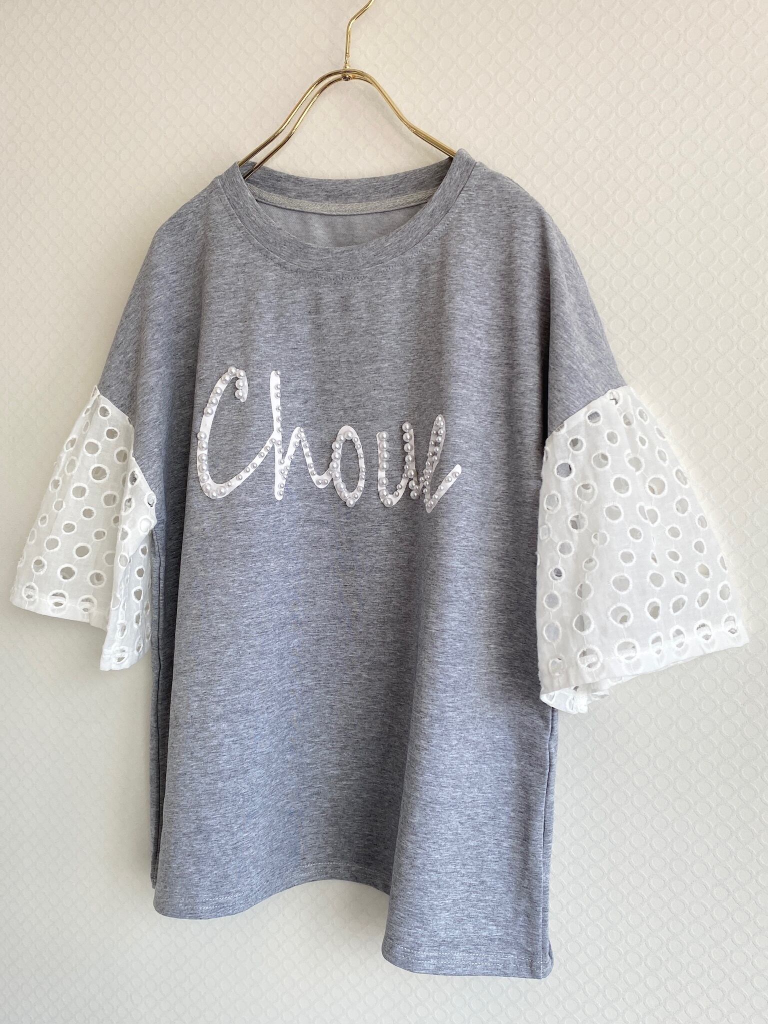 お袖のレースと胸元のパール文字が