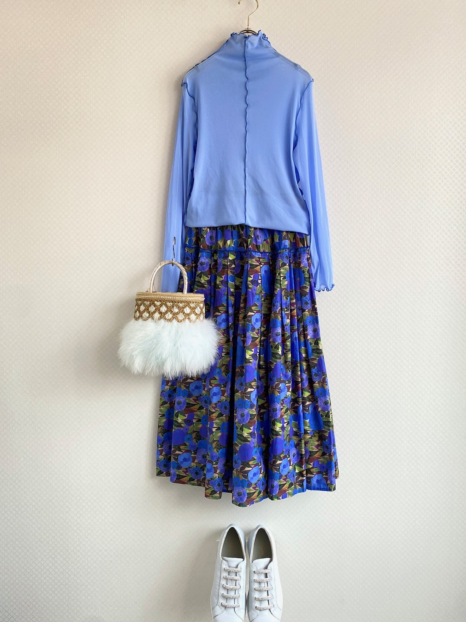 ブルーの花柄が華やかでオシャレにコーディネート出来ます。