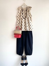 ドット柄が印象で黒パンツ合わせがオススメです。
