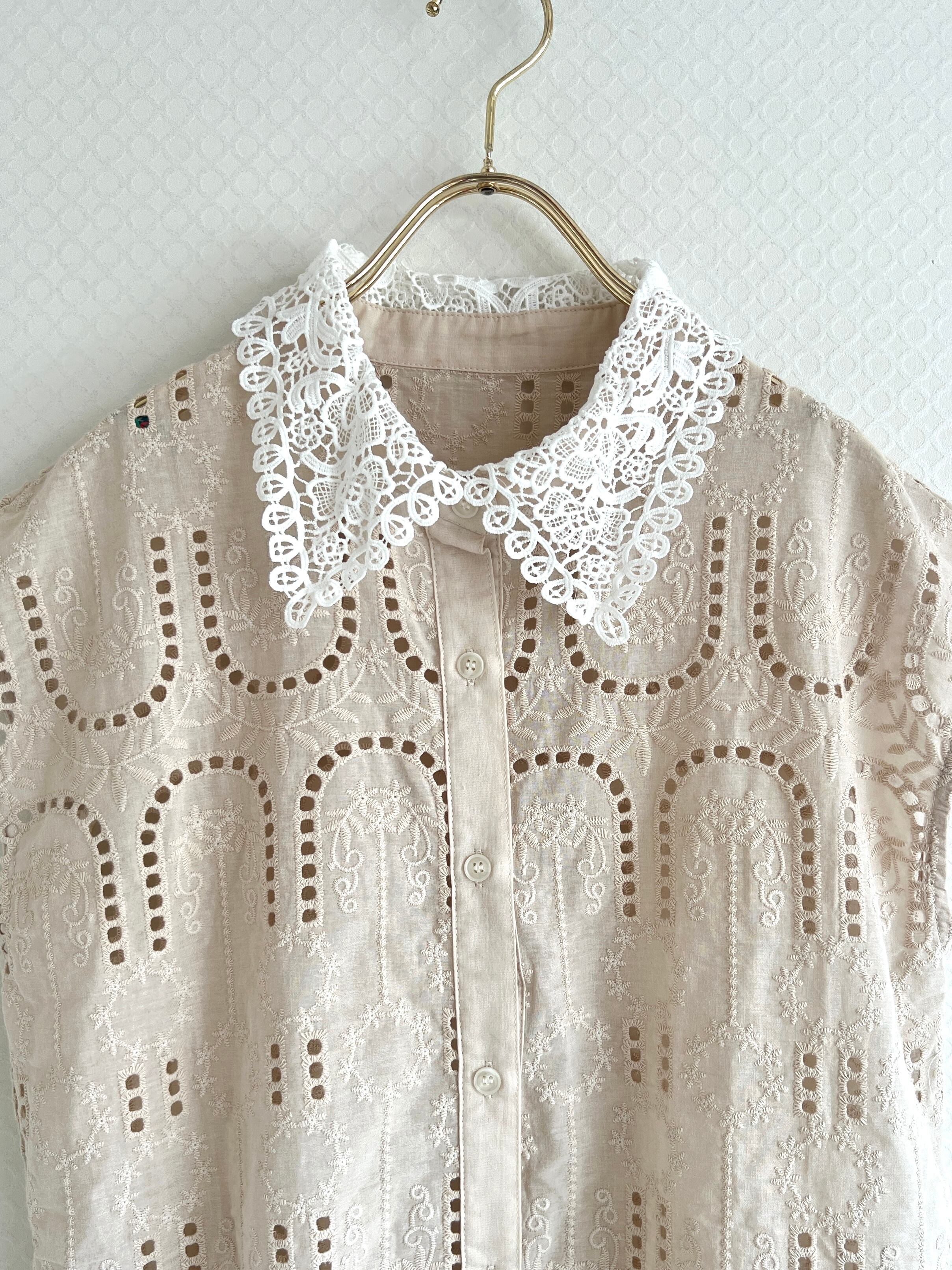 ショート丈なのでスカートやパンツ、着回しやすいアイテムです。レースブラウスなので女性らしくて可愛い印象に。