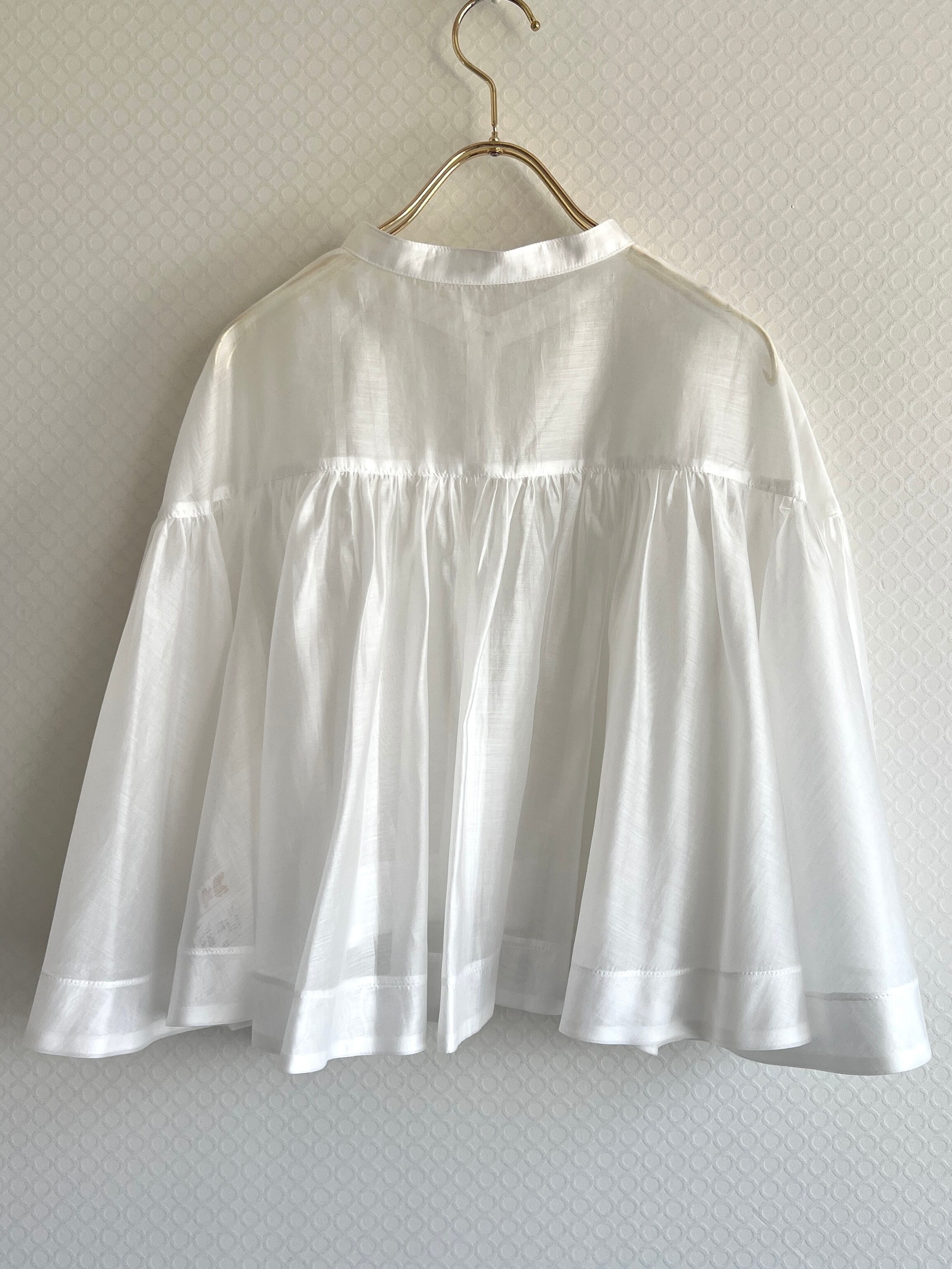 お袖のボリューム感が女性らしくお洒落なアイテム。ショート丈なのでスカート、パンツ合わせにぴったりです。