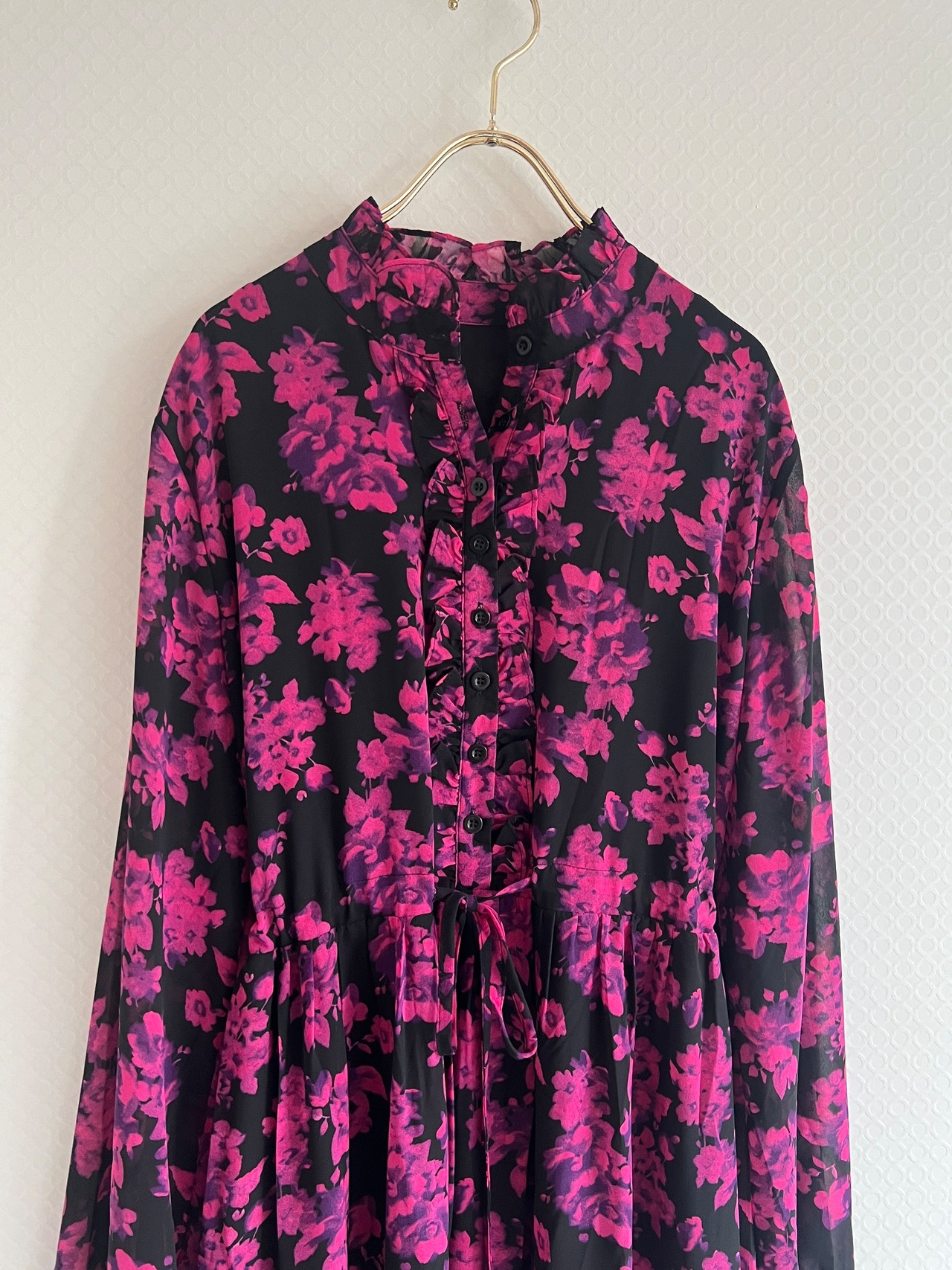 少し羽織りたい、肌寒い時に1枚持っていると便利です。鮮やかなピンクカラーがお洒落です。