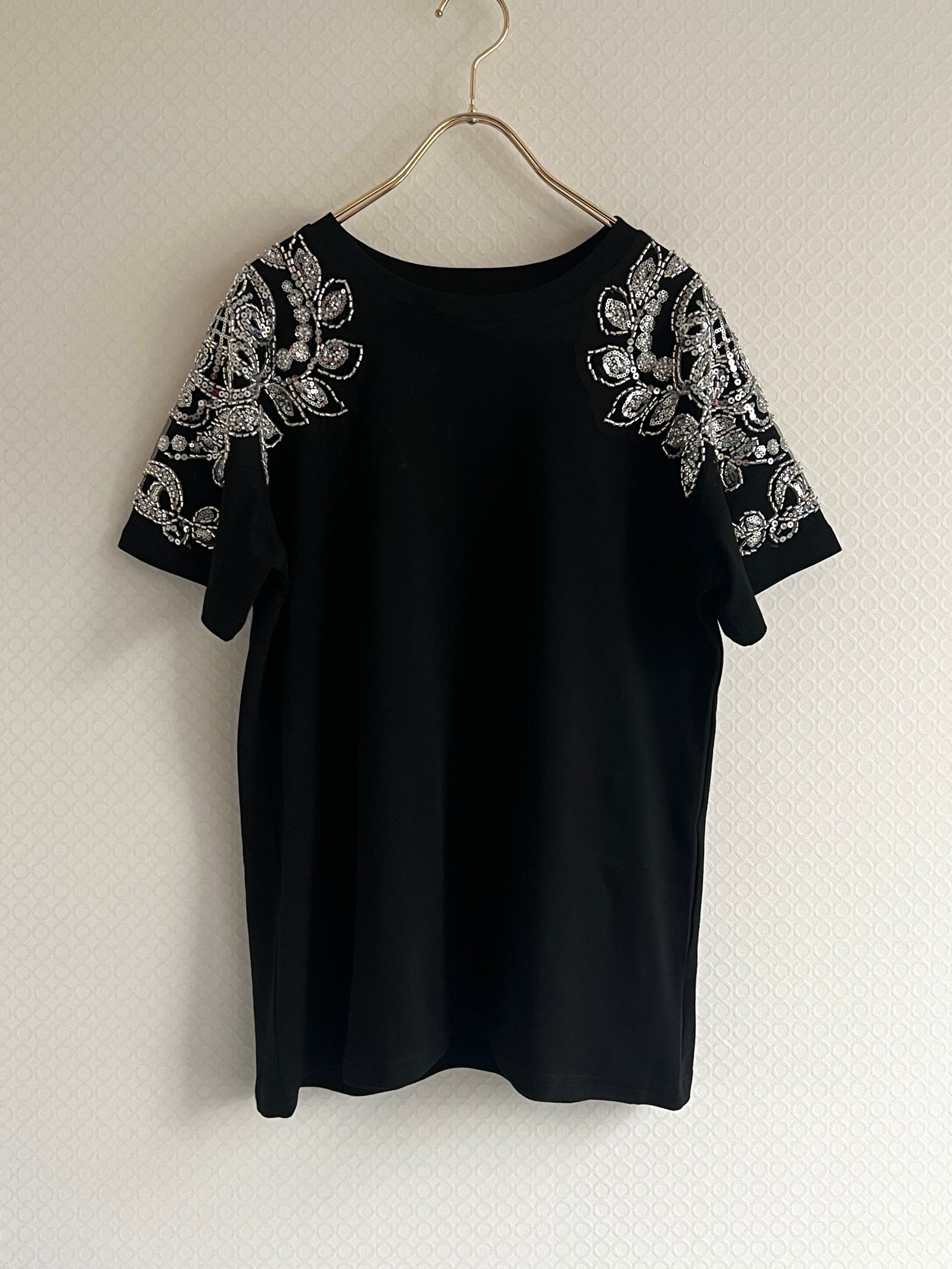 袖のビジューが華やかで色んなシーンで楽しめるブラウスです。伸縮性があり着やすいです。