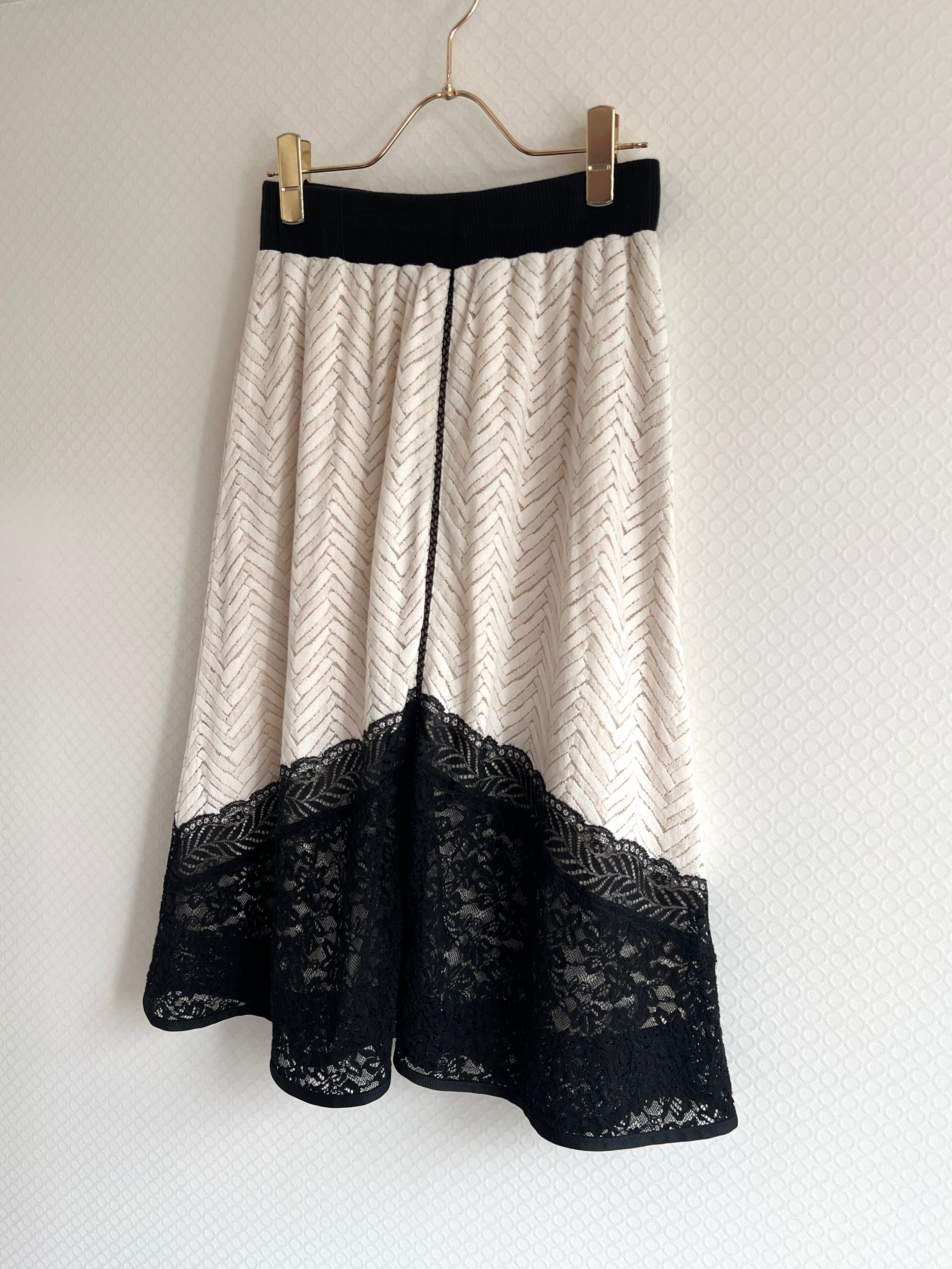 レースが特徴的で可愛らしくガーリーに着て頂けます。丈は少し短めなので身長が低い方でも着て頂けます。