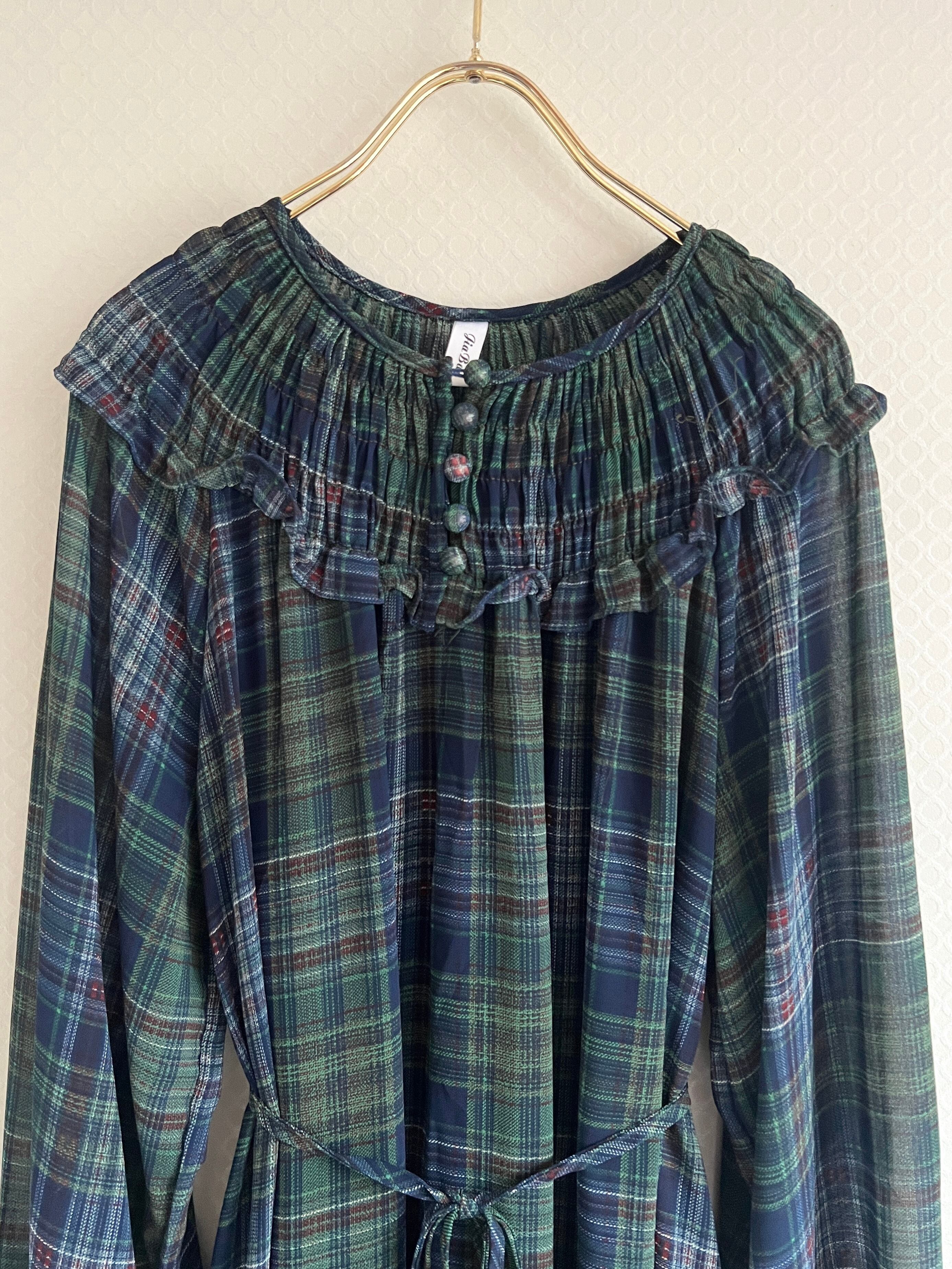 秋らしいチェックのワンピースです。
